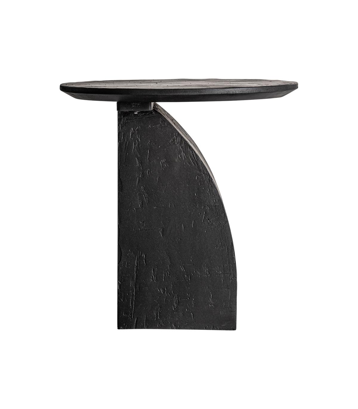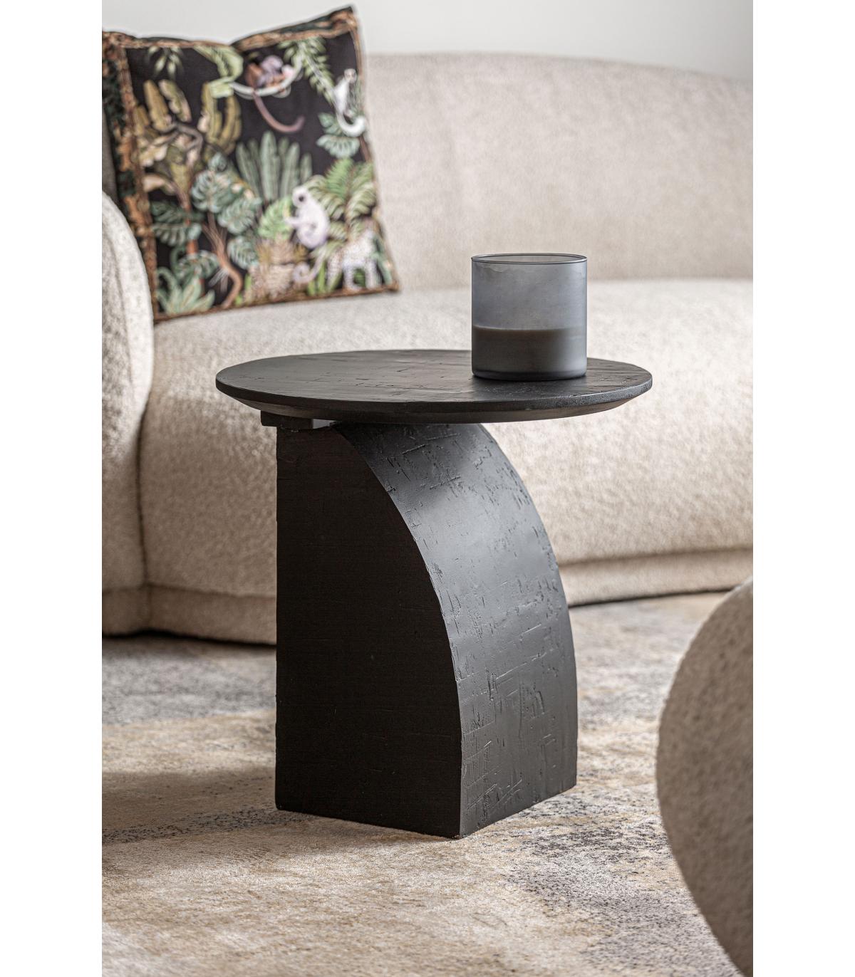 Mesa auxiliar redonda annika de estilo contemporáneo, fabricado en madera de mango en color negro, combinado con madera dm.