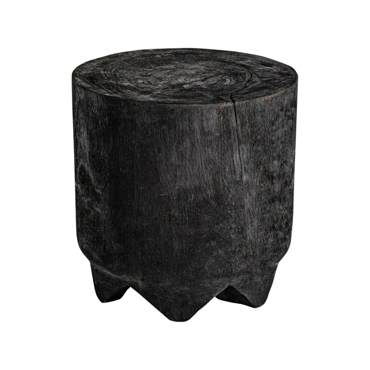 Mesa auxiliar kepoi, en color negro envejecido, de estilo étnico. Fabricado en madera suar carbonizada.