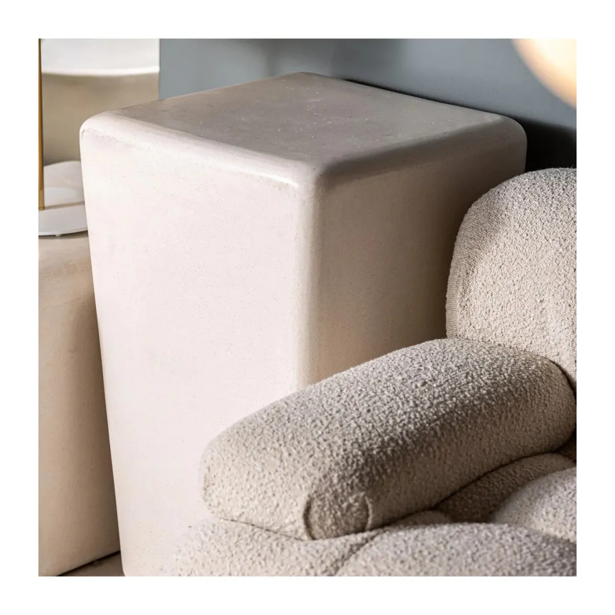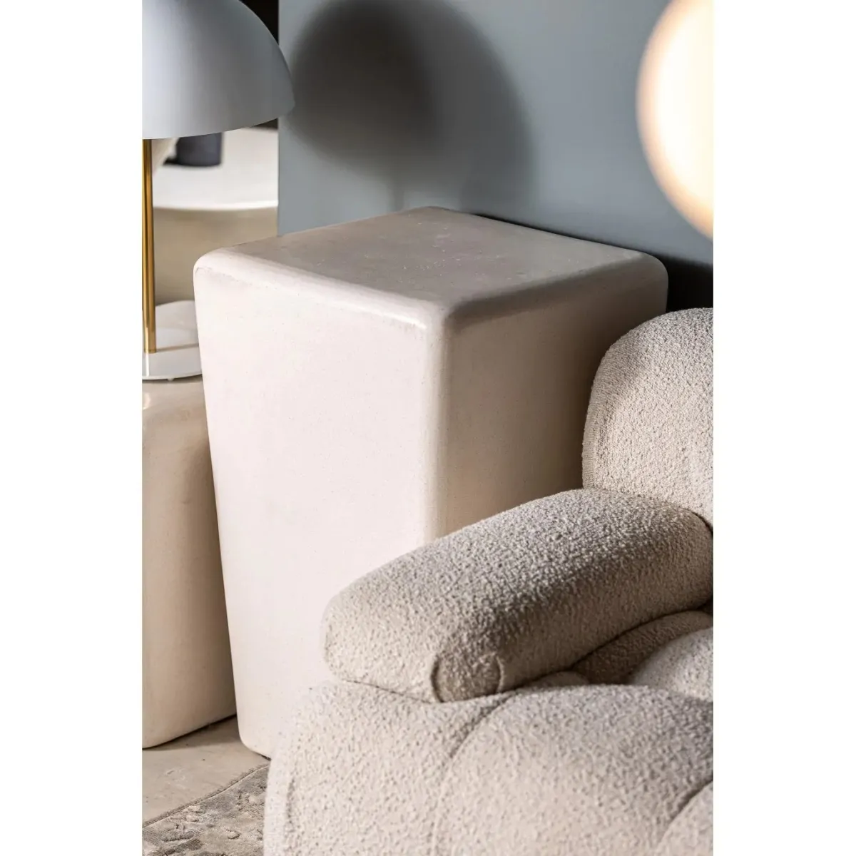 Mesa auxiliar vasto, en color blanco, de estilo contemporáneo. Fabricado en piedra.