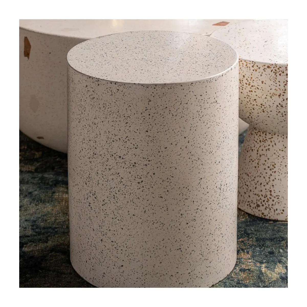 Mesa auxiliar albenga, en color blanco, de estilo contemporáneo. Fabricado en terrazo.