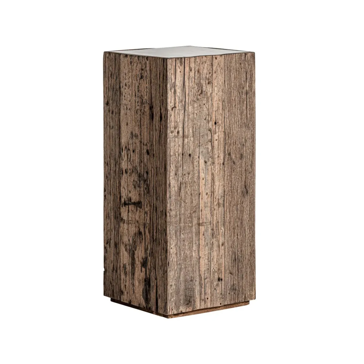Peana samsun, en color natural envejecido, de estilo étnico. Fabricado en madera de pino reciclado, combinado con mármol. Varias maderas: pino, mango, teka, acacia.
