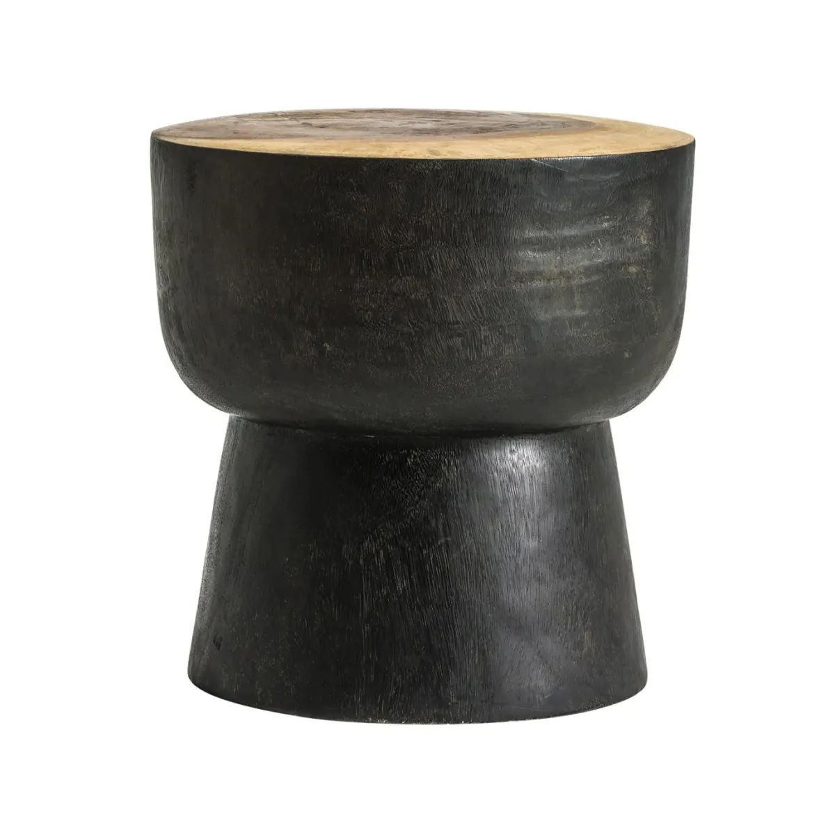 Mesa auxiliar arusa, en color negro/natural envejecido, de estilo étnico. Fabricado en madera tropical.