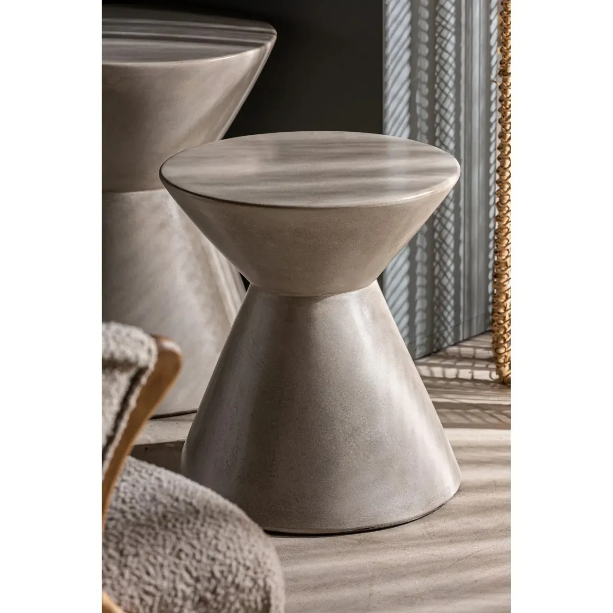 Mesa auxiliar telfs, en color gris, de estilo contemporáneo. Fabricado en cemento.