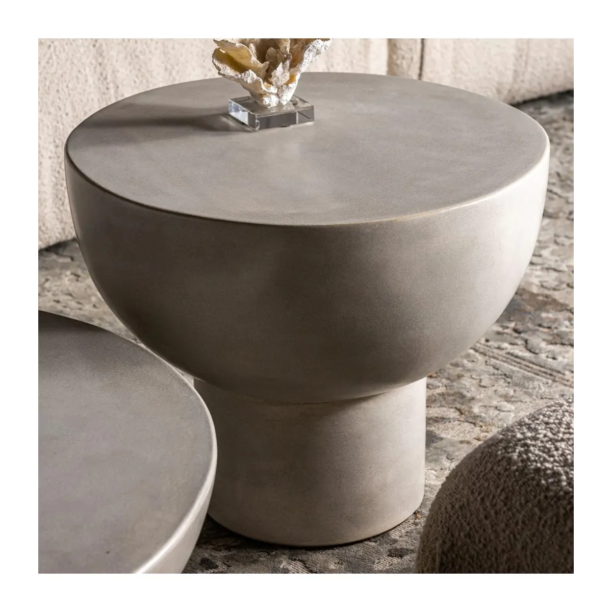 Mesa auxiliar telfs, en color gris, de estilo contemporáneo. Fabricado en cemento.