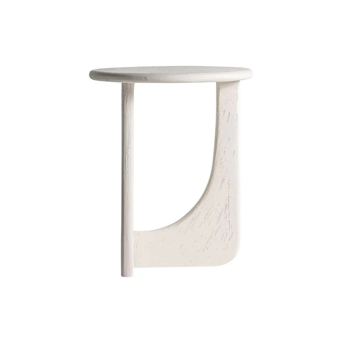 Mesa auxiliar inha, en color blanco roto, de estilo contemporáneo. Fabricado en madera de mango, combinado con madera dm.
