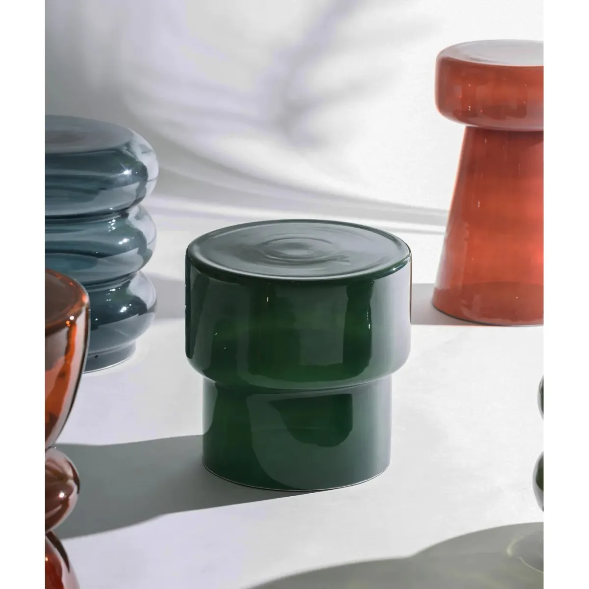 Mesa auxiliar Varenna de estilo contemporáneo, fabricado en vidrio en color verde con acabado brillo.