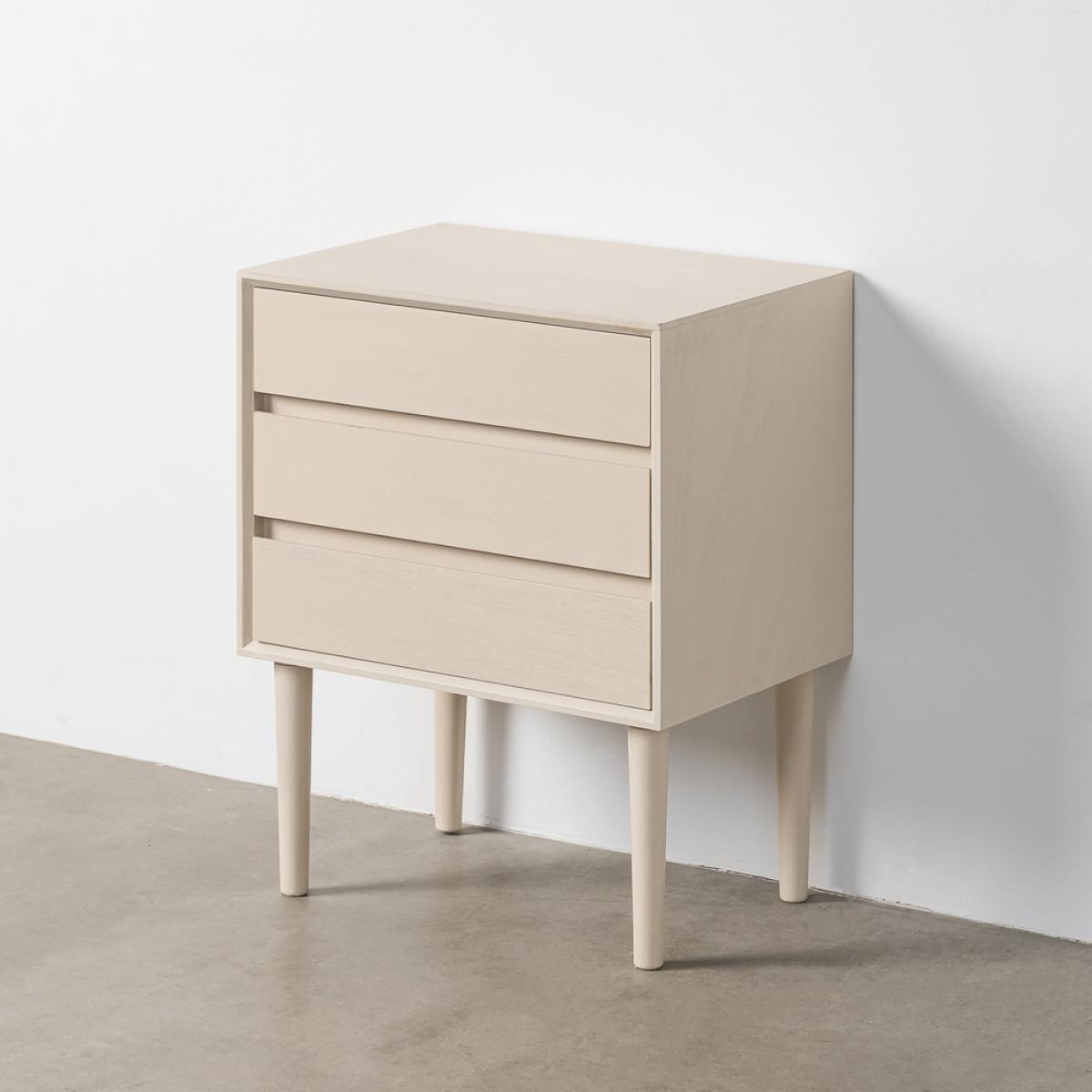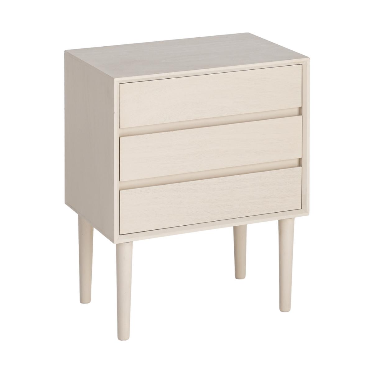 MESITA CREMA DM DORMITORIO 50 X 35 X 62,50 CM Material: Dm. Medida cajones: 47x10.5cm. Altura patas: 23cm.