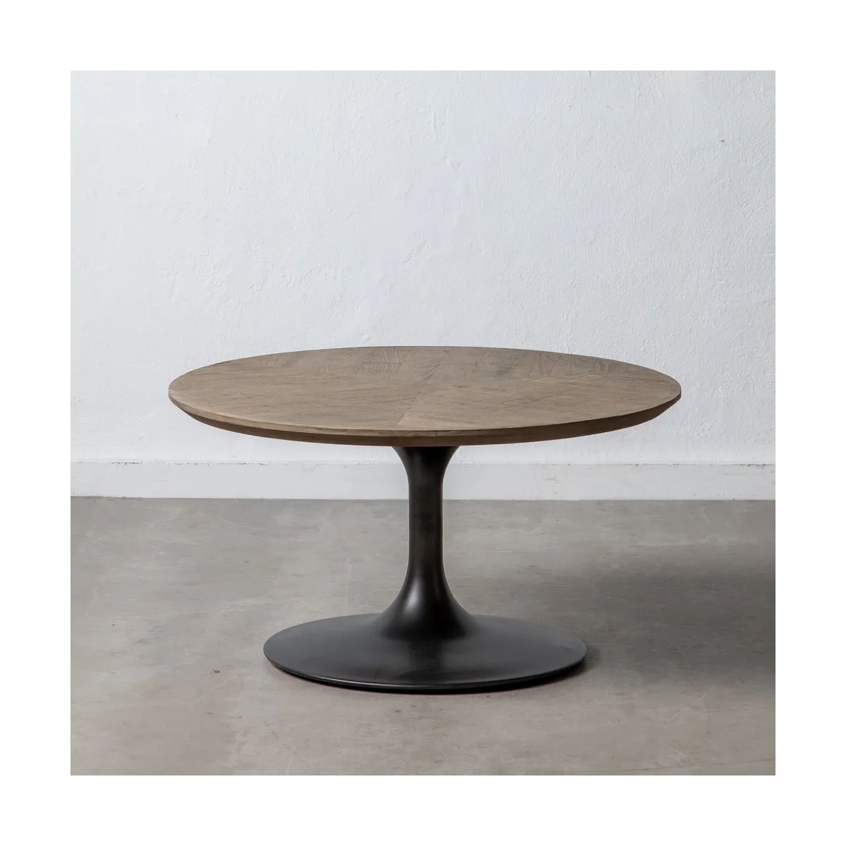 MESA CENTRO NEGRO MADERA-HIERRO SALÓN 80 X 80 X 43,50 CM MATERIALES: MADERA DE OLMO Y HIERRO