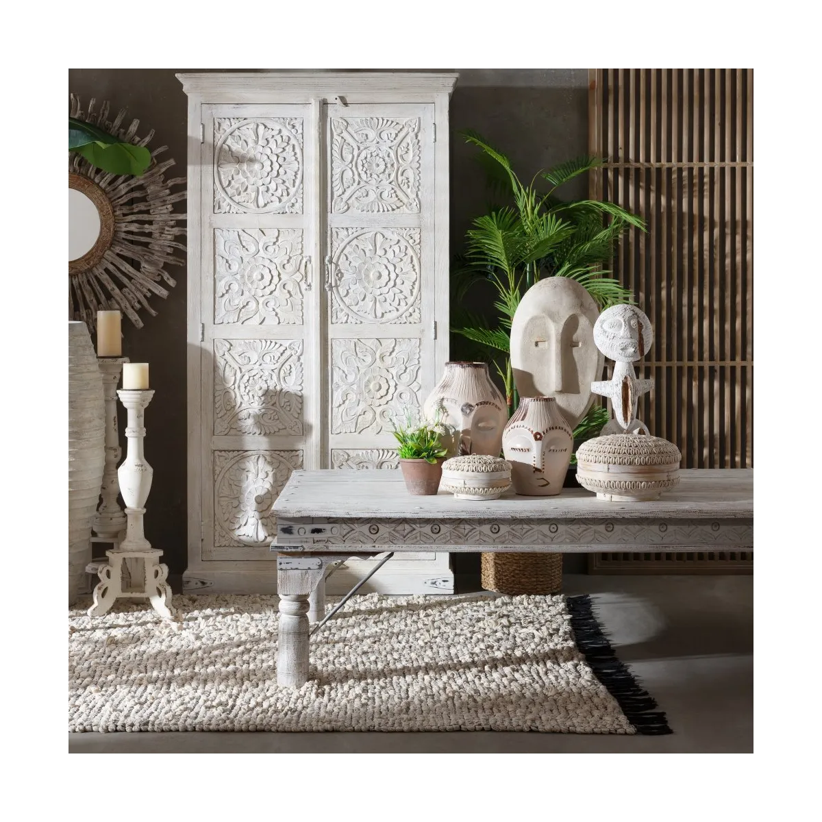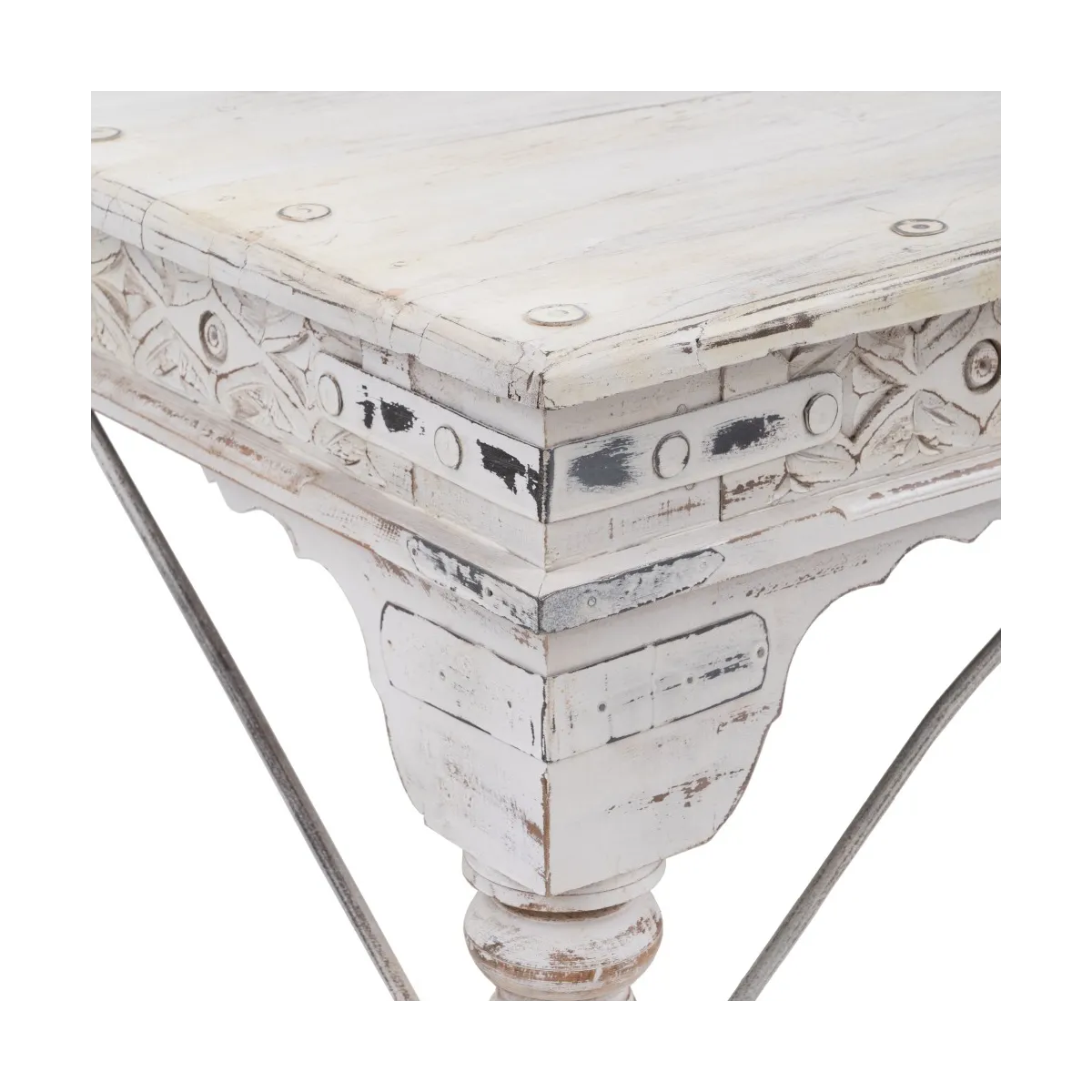 MESA CENTRO BLANCO ROZADO MADERA MANGO 177 X 100 X 50 CM .