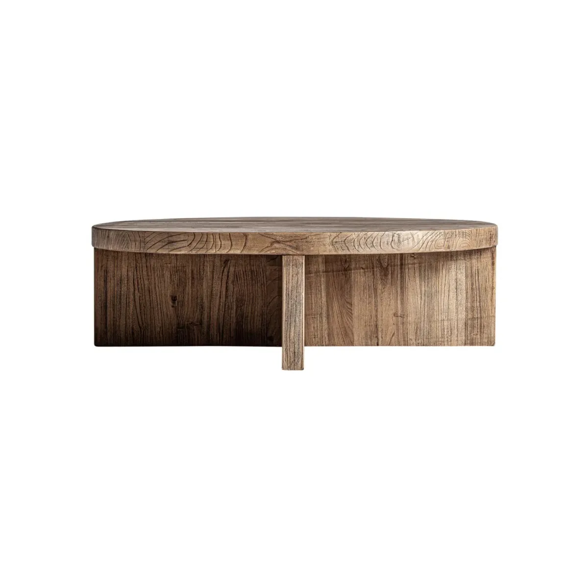 Mesa de centro fabricado en madera de olmo en color marrón.