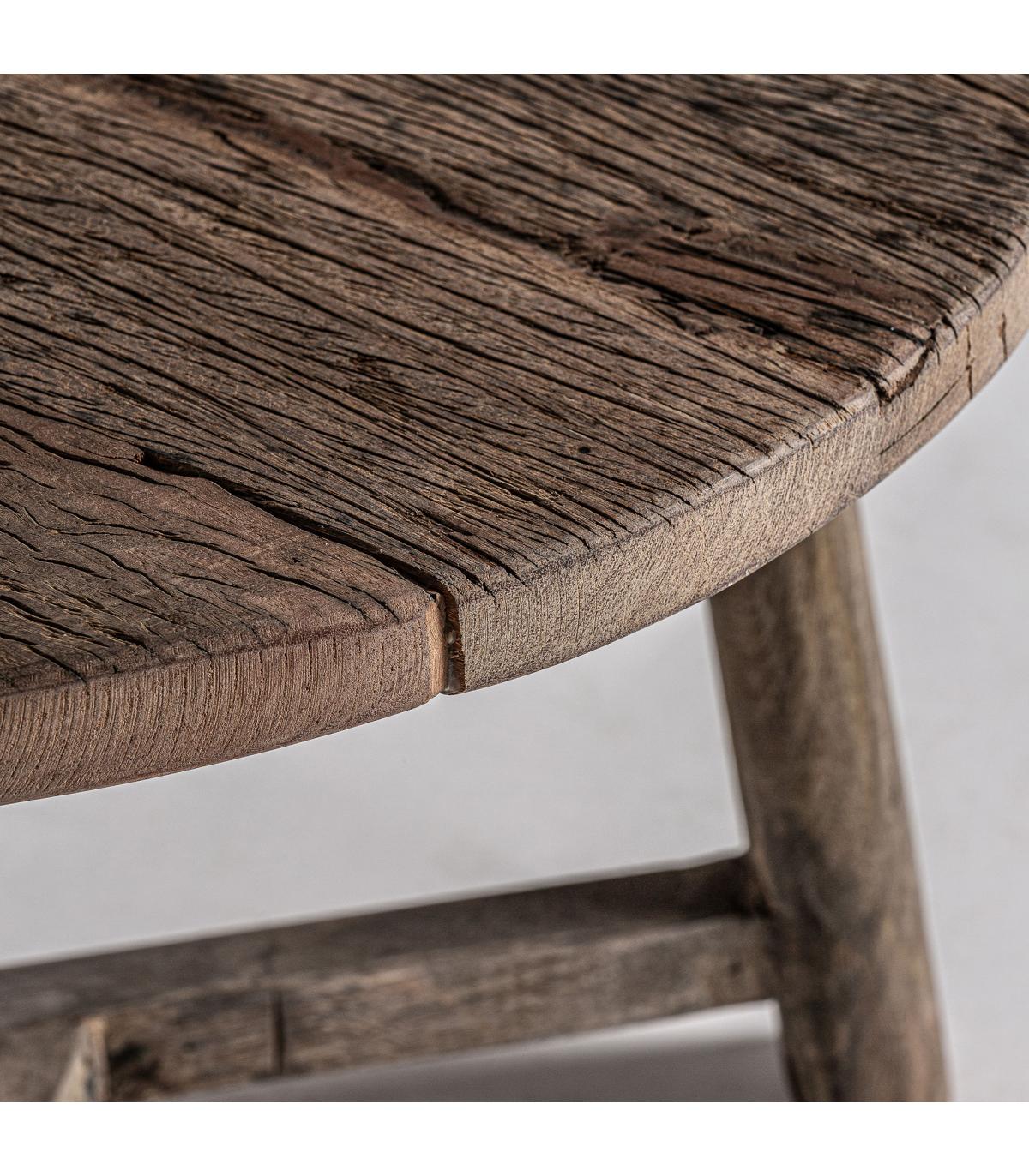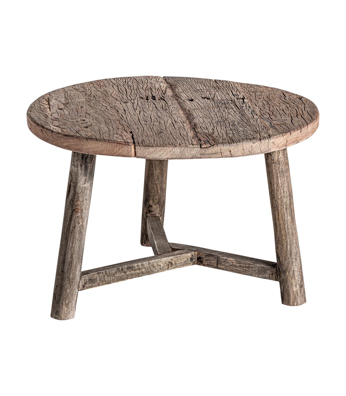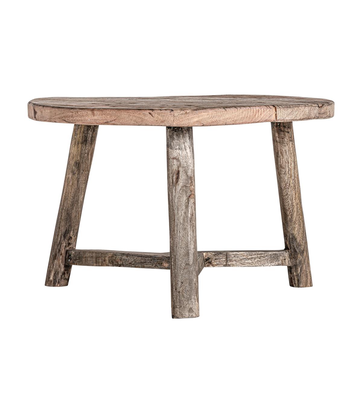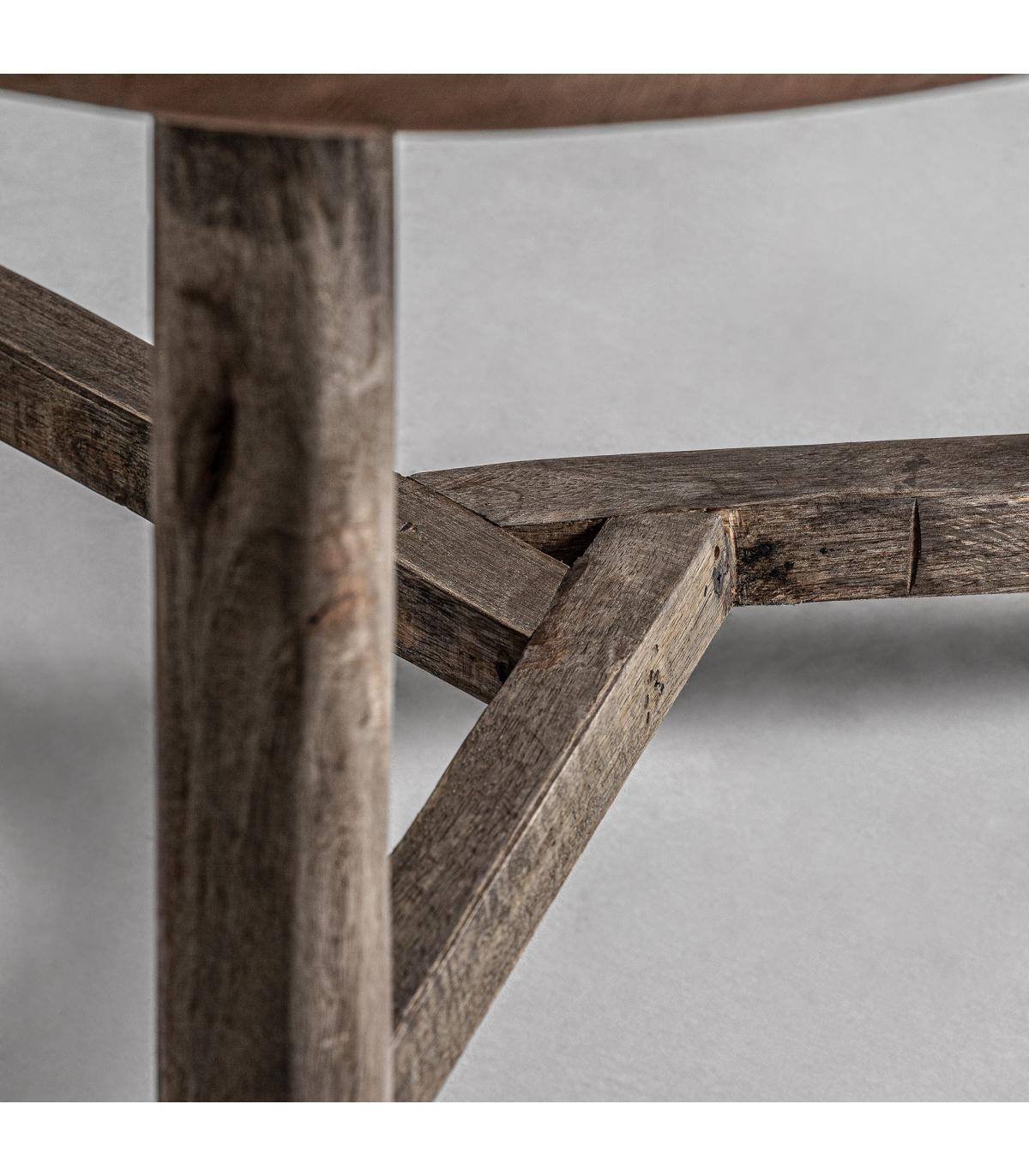Mesa de centro samsun de estilo étnico fabricado en madera de pino reciclado en color marrón con acabado envejecido combinado con madera de mango reciclada y madera de teka reciclada. Acacia reciclada.