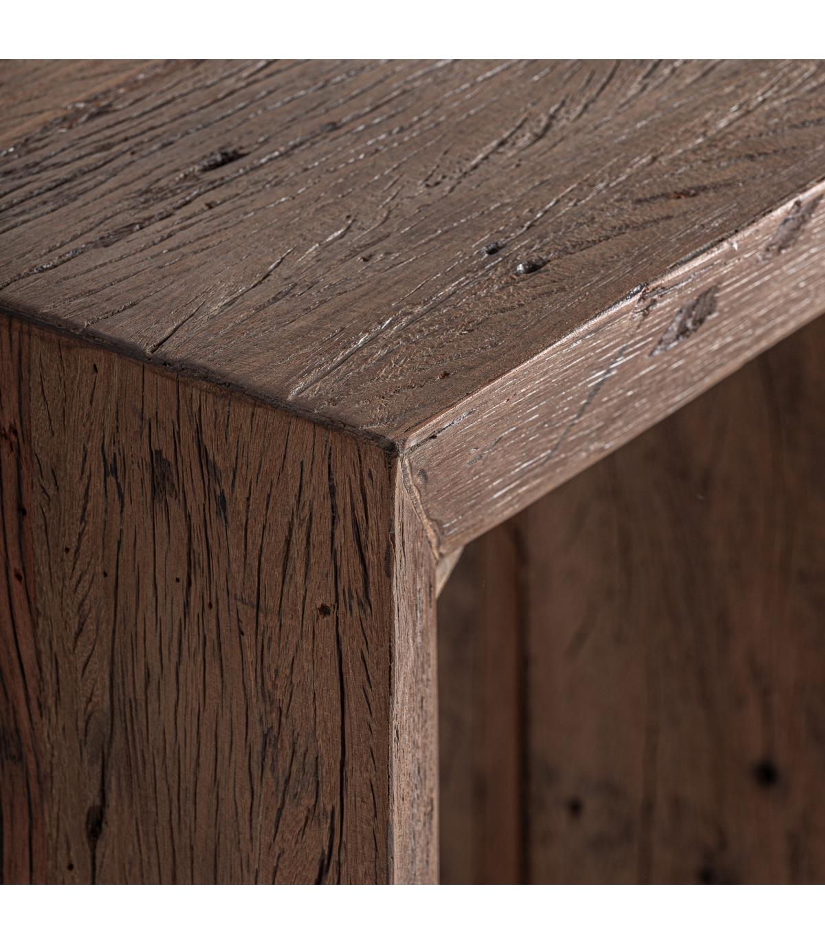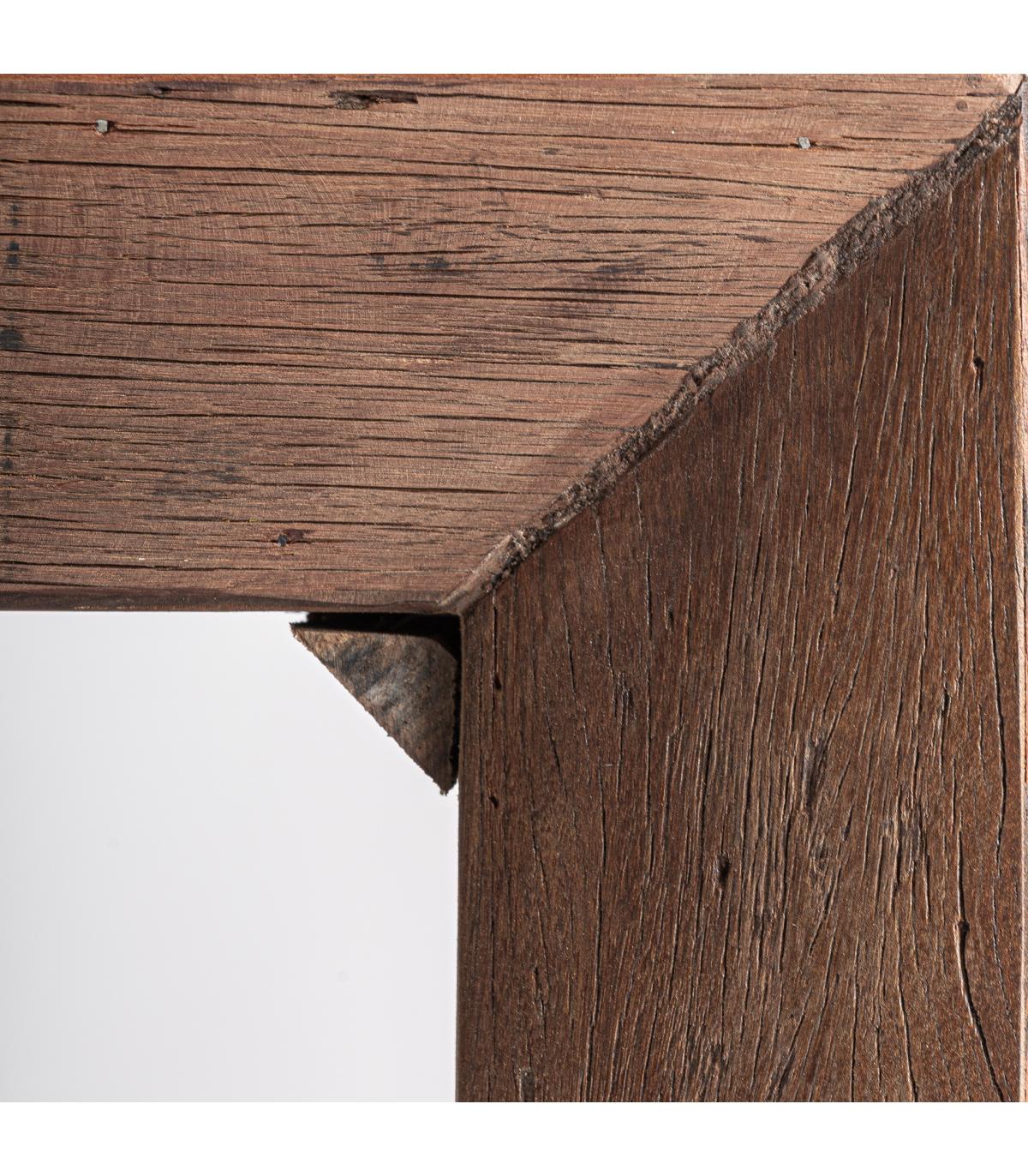 Mesa de centro fabricado en madera recuperada en color marrón.
