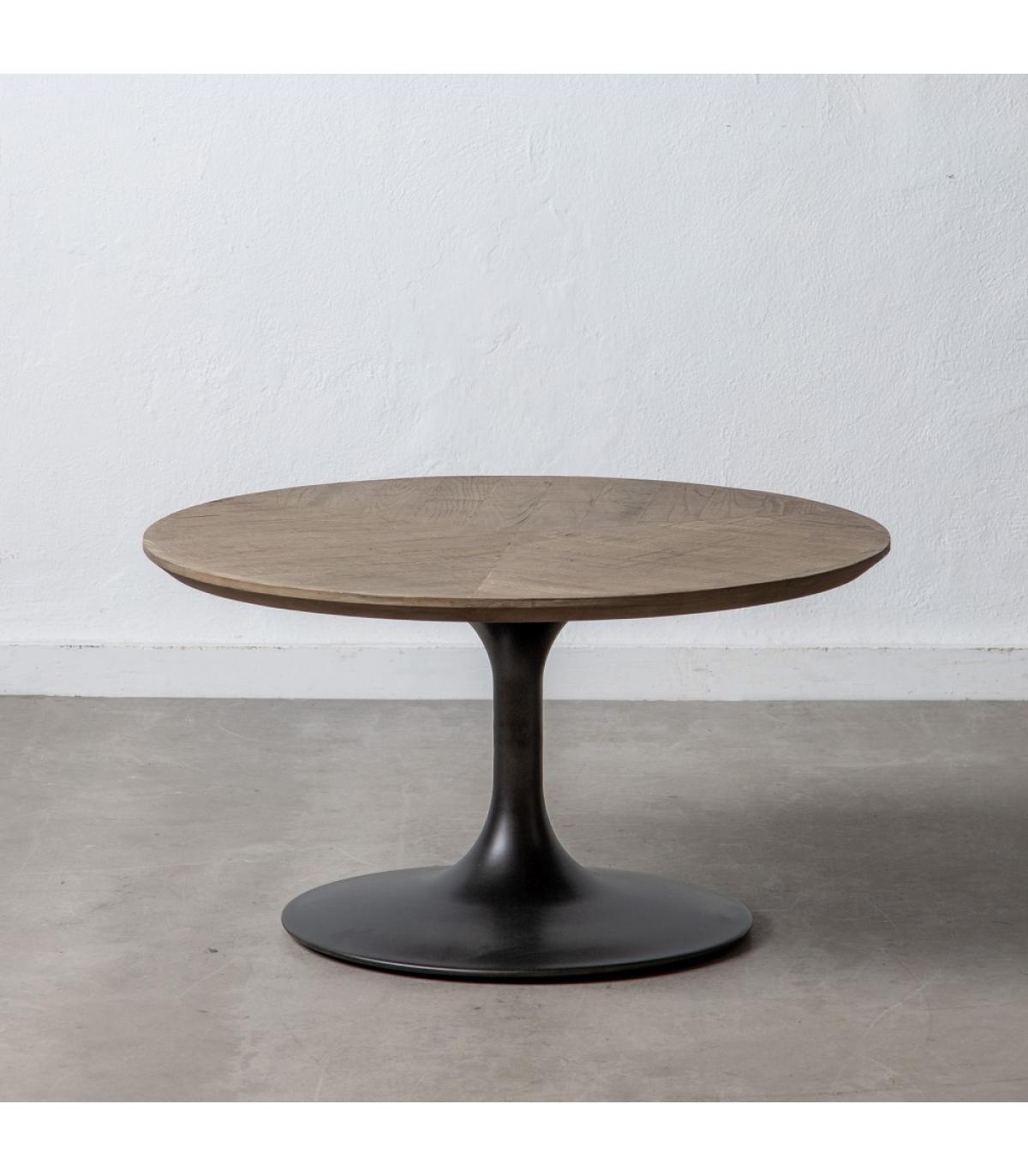 MESA CENTRO NEGRO MADERA-HIERRO SALÓN 80 X 80 X 43,50 CM MATERIALES: MADERA DE OLMO Y HIERRO