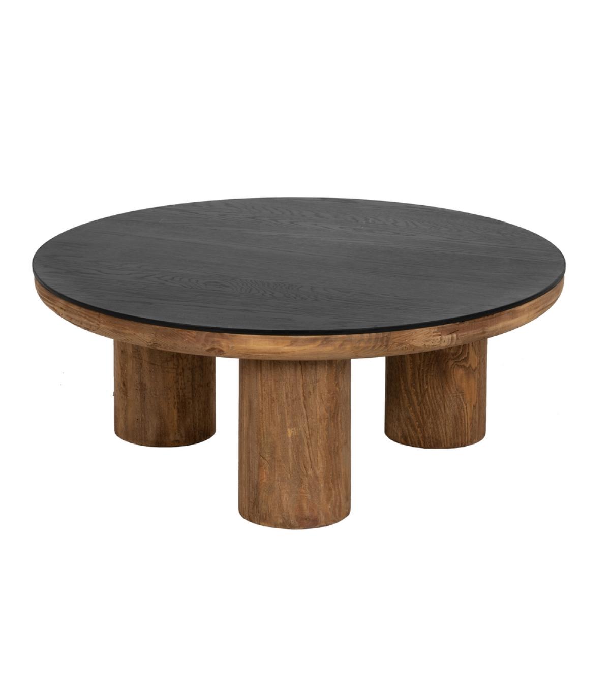 MESA CENTRO NATURAL-NEGRO MADERA DE PINO 90 X 90 X 35 CM Material: madera de pino reciclada, chapa de roble. Grosor tablero: 5cm. Altura patas: 30cm.