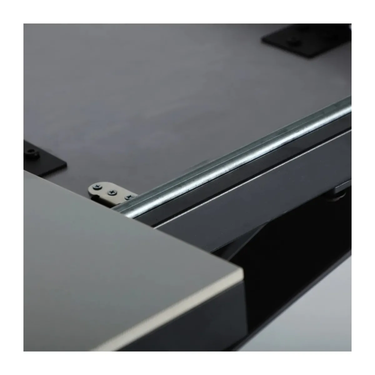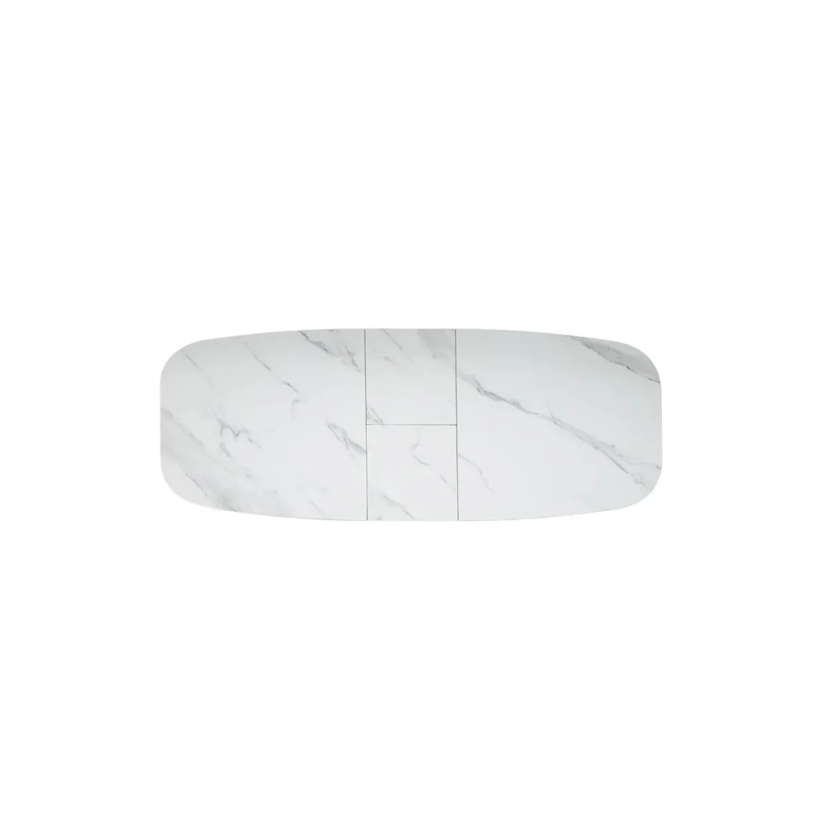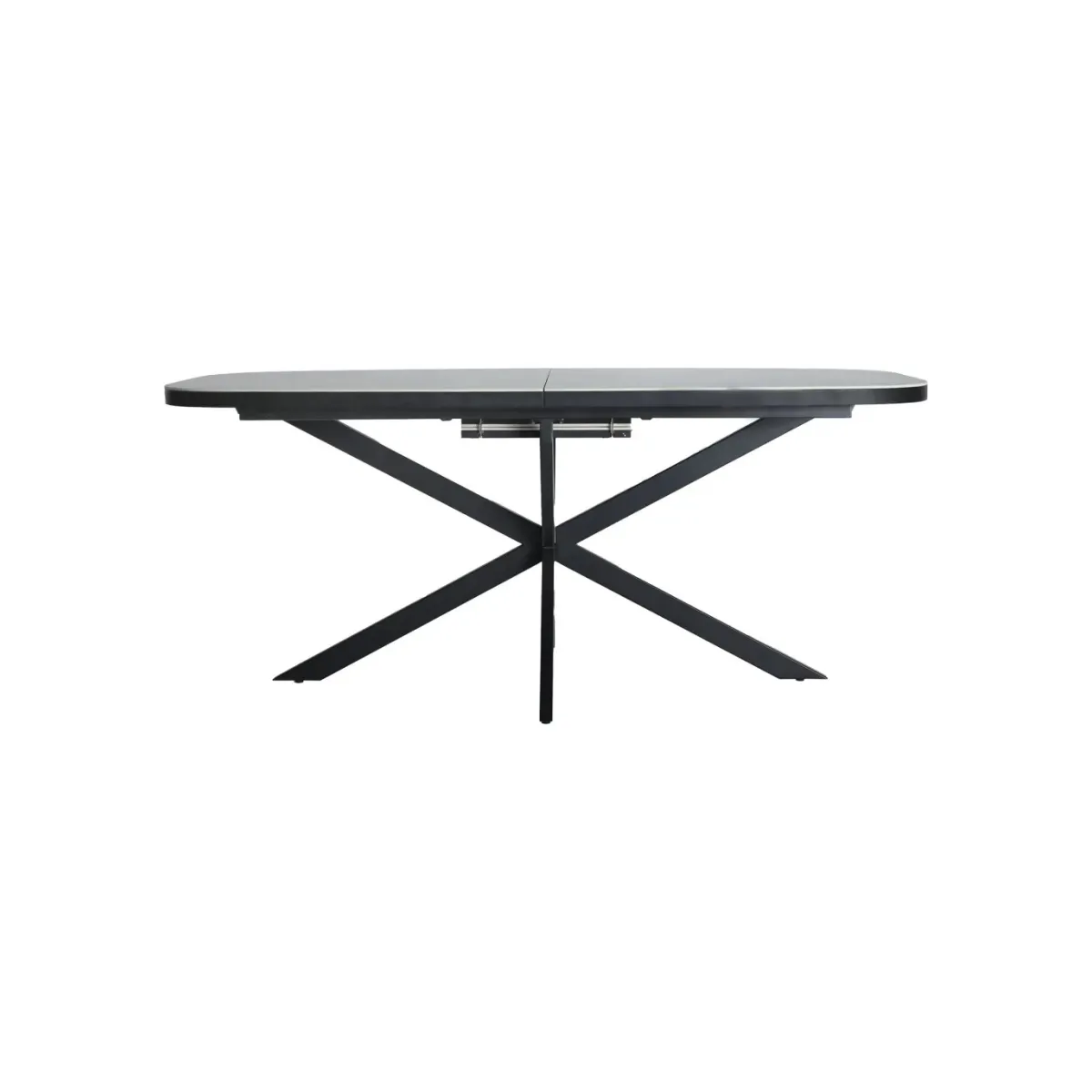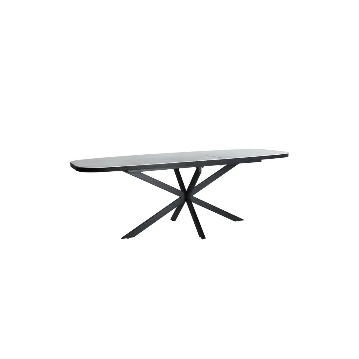 Mesa extensible Droux de estilo contemporáneo, fabricado en madera dm en color negro, combinado con cerámica en color blanco y hierro en color negro.
