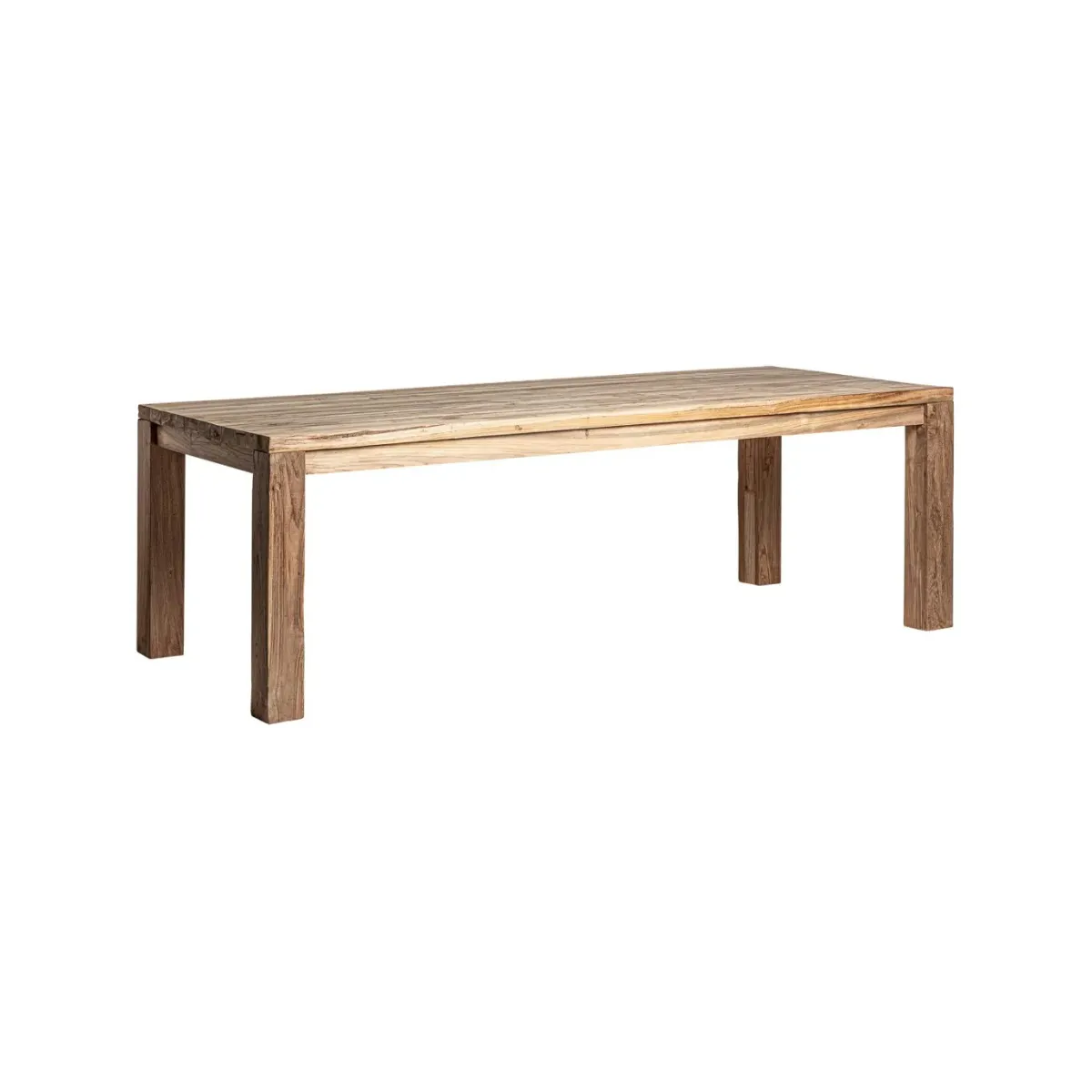 Mesa comedor lux de estilo colonial fabricado en madera de teka reciclada en color marrón. Producto desmontable.