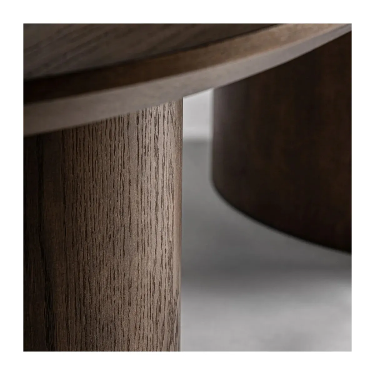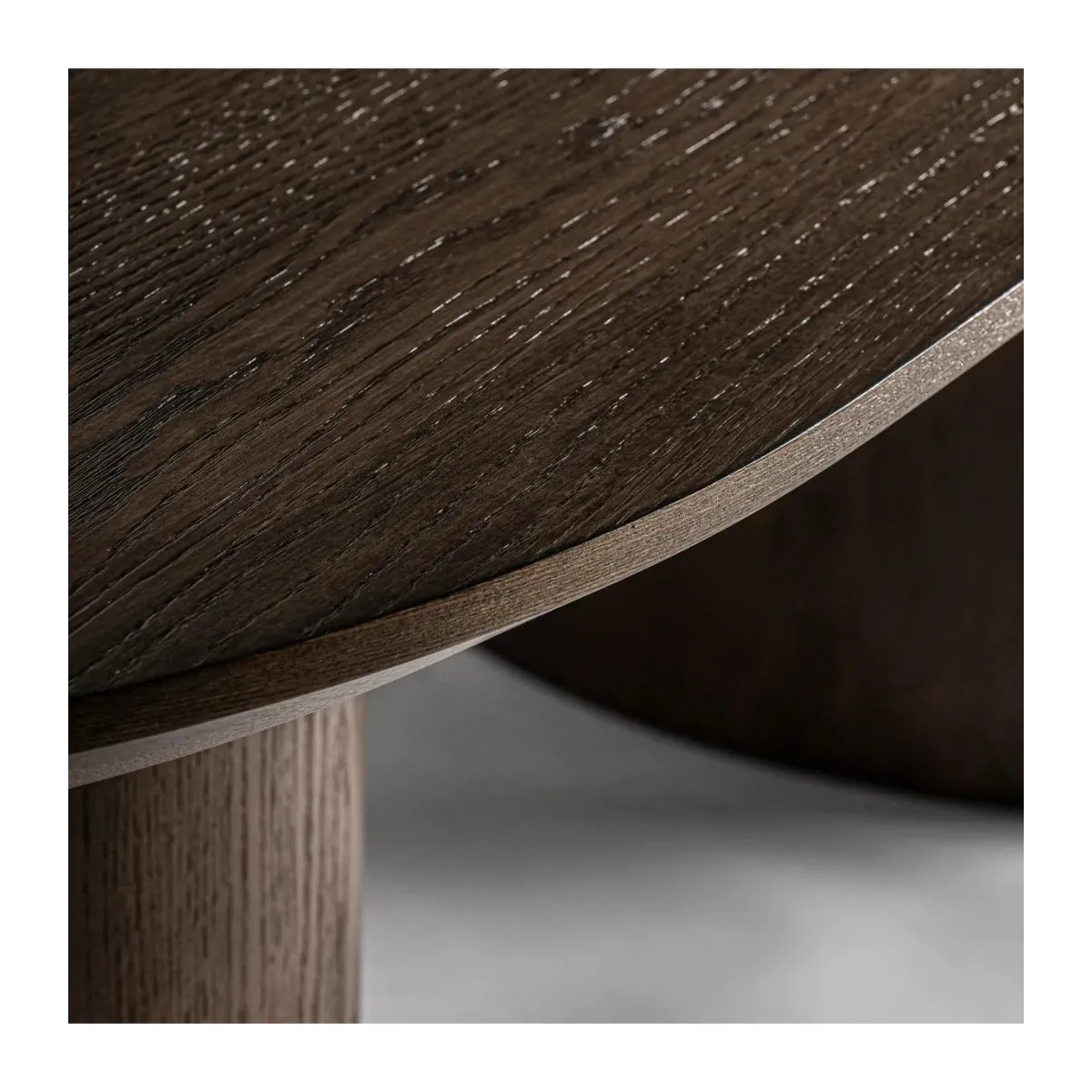 Mesa comedor Treignac de estilo art deco fabricado en chapa de roble en color marrón con acabado teñido combinado con madera contrachapada y madera dm. Producto desmontable.