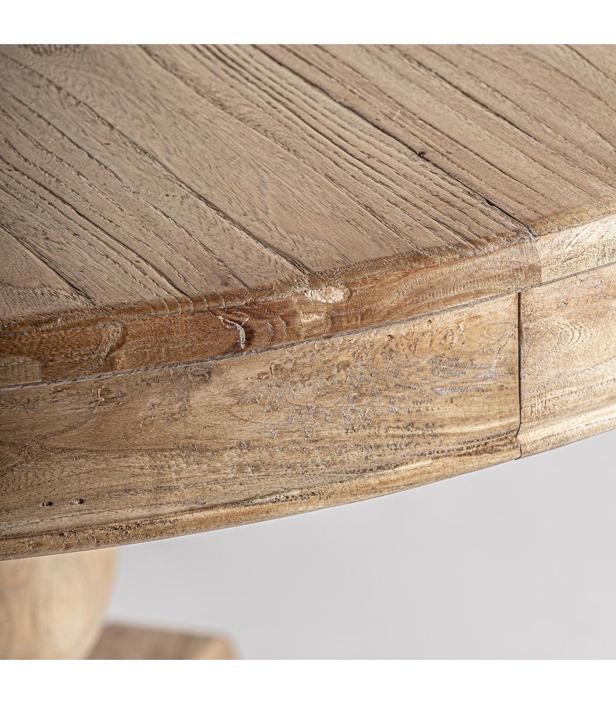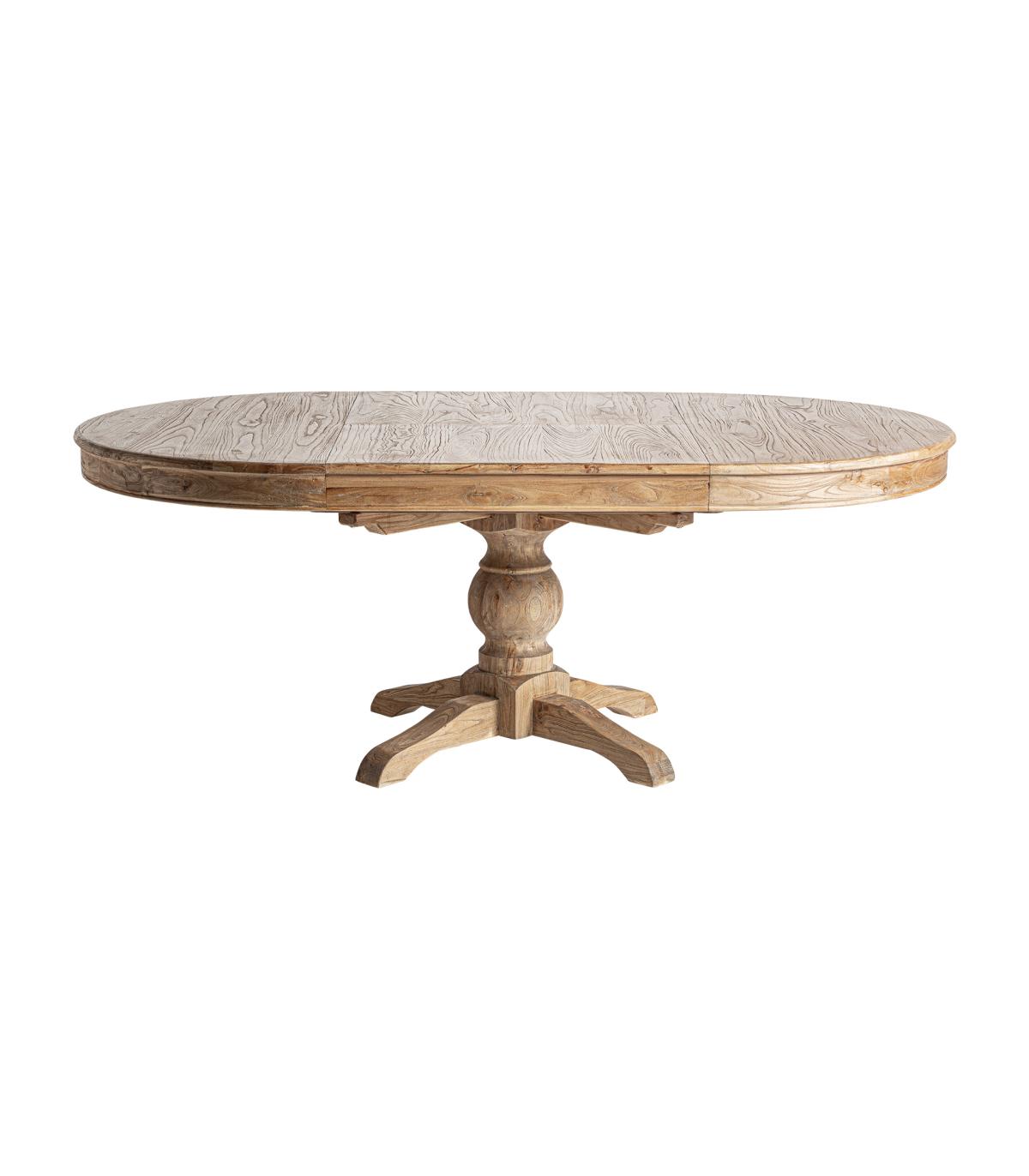 Mesa extensible sonvigo en color marrón de estilo colonial. Fabricado en madera de olmo reciclado. Producto desmontable extensible.