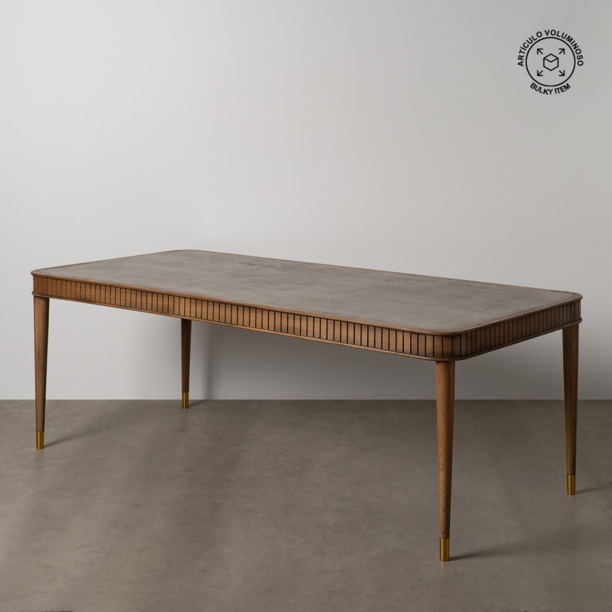 MESA COMEDOR MADERA-MICROCEMENTO SALÓN 220 X 100 X 76 CM Material: madera de mindi y microcemento. Altura patas: 66,5cm.