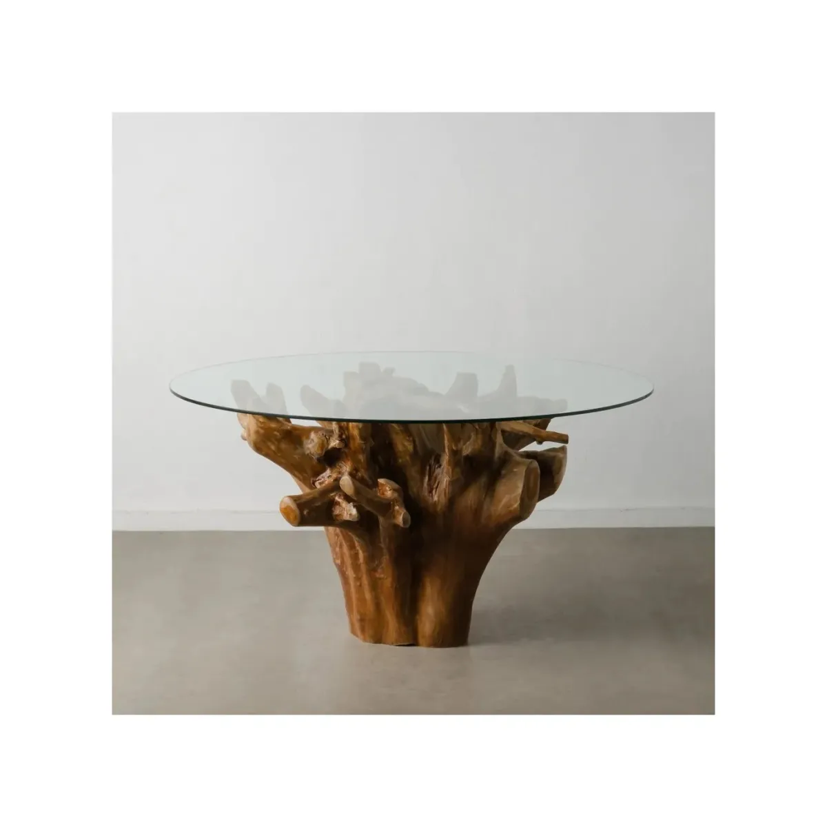 MESA COMEDOR NATURAL MADERA / CRISTAL 140 X 140 X 75 CM Material: madera de teca, cristal.