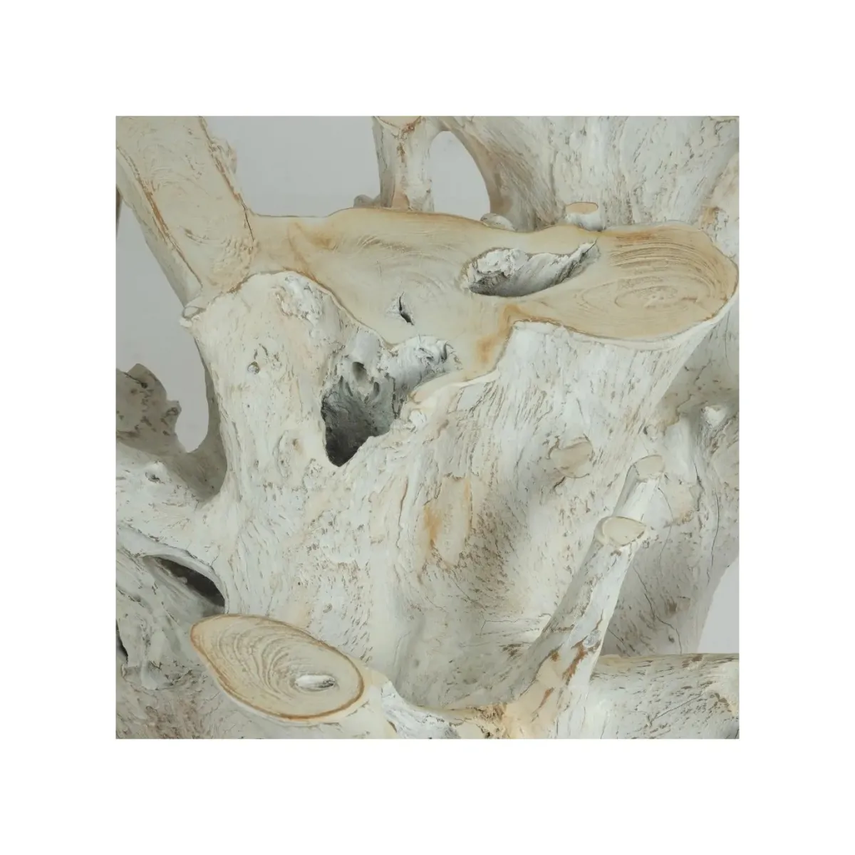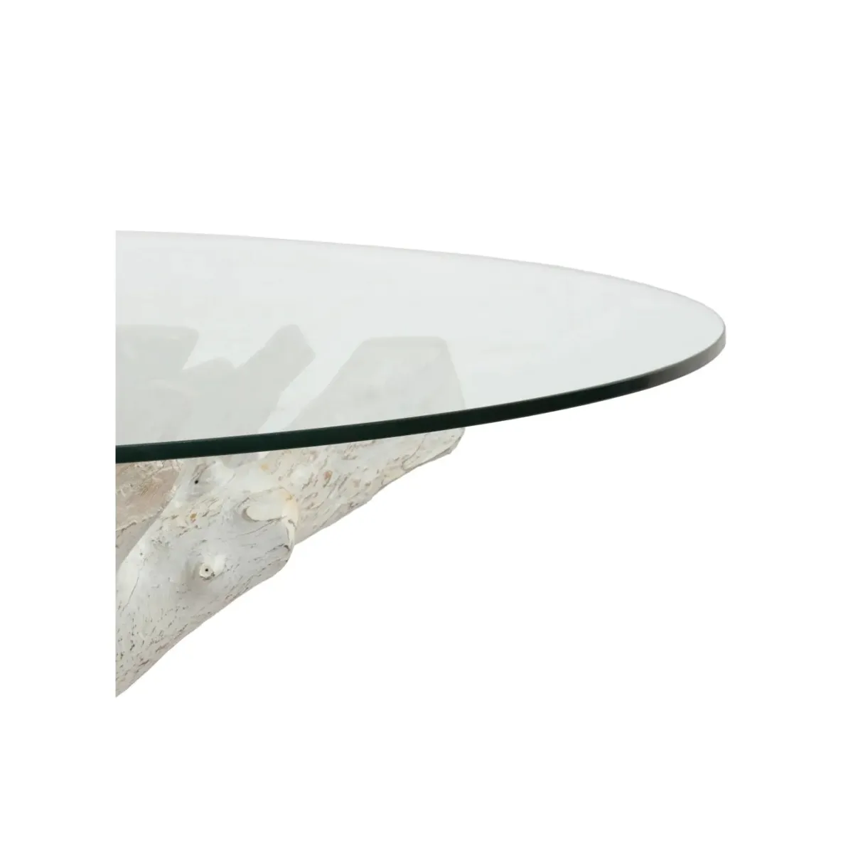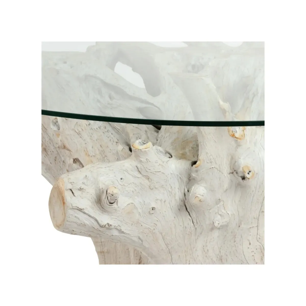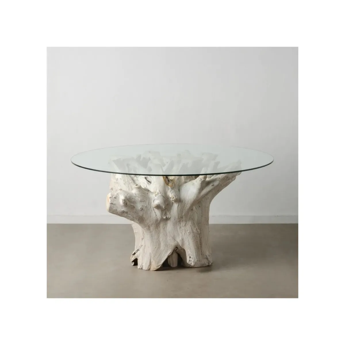 MESA COMEDOR BLANCO ROZADO 140 X 140 X 75 CM Material: madera de teca, cristal.