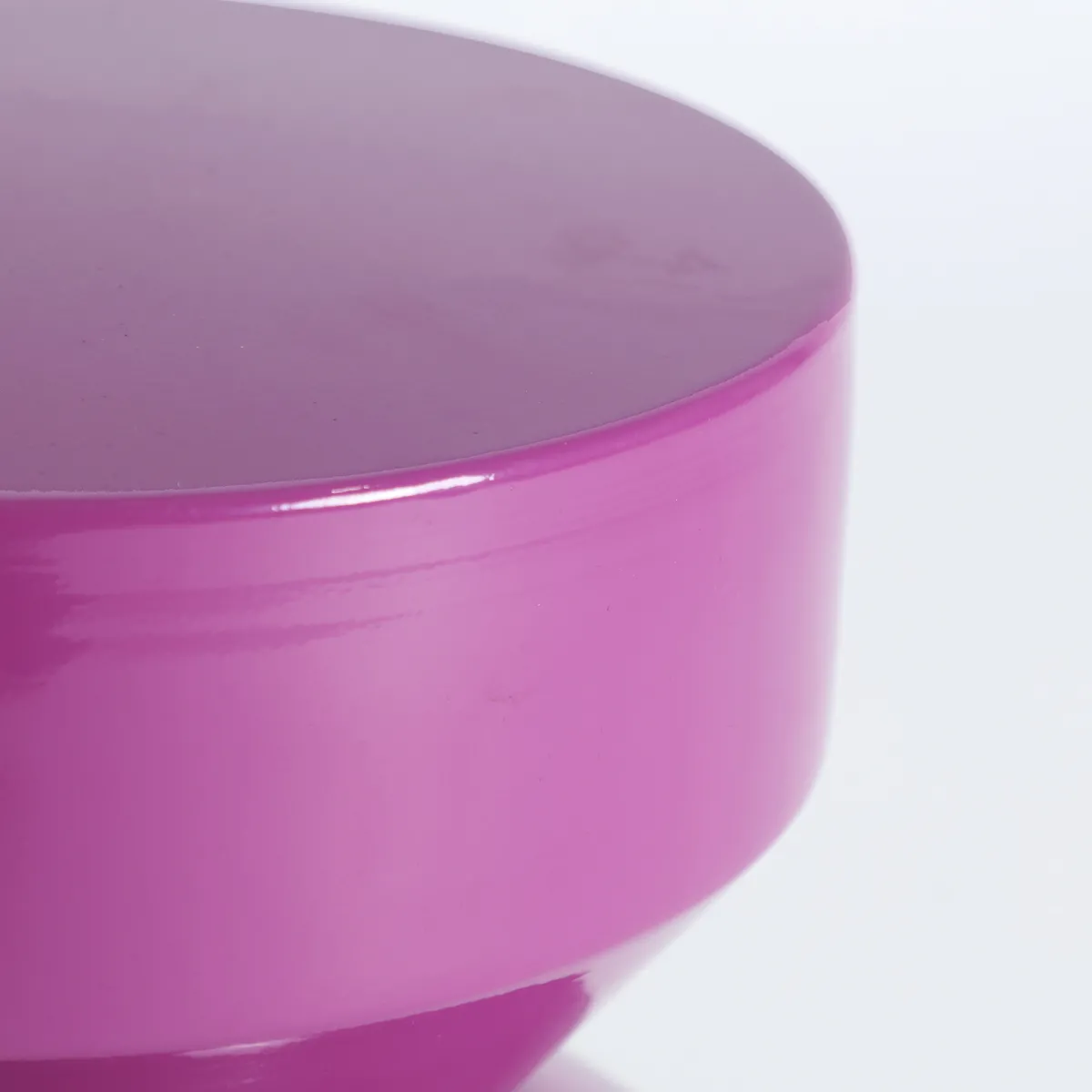 Mesa auxiliar Glow de estilo contemporáneo, fabricado en hierro en color morado con acabado brillo.