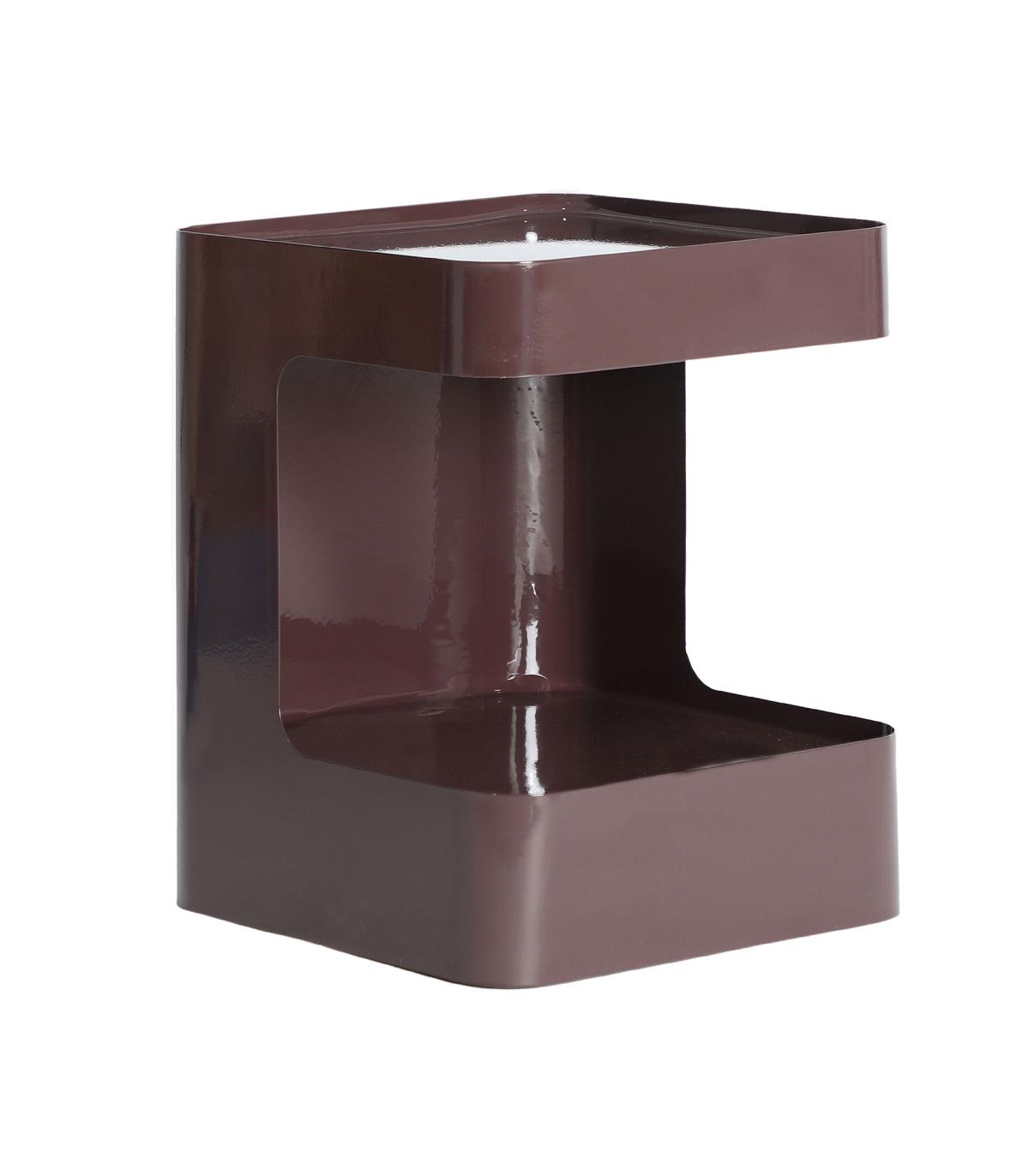 Mesita de noche Umoa de estilo contemporáneo, fabricado en hierro en color chocolate con acabado brillo.