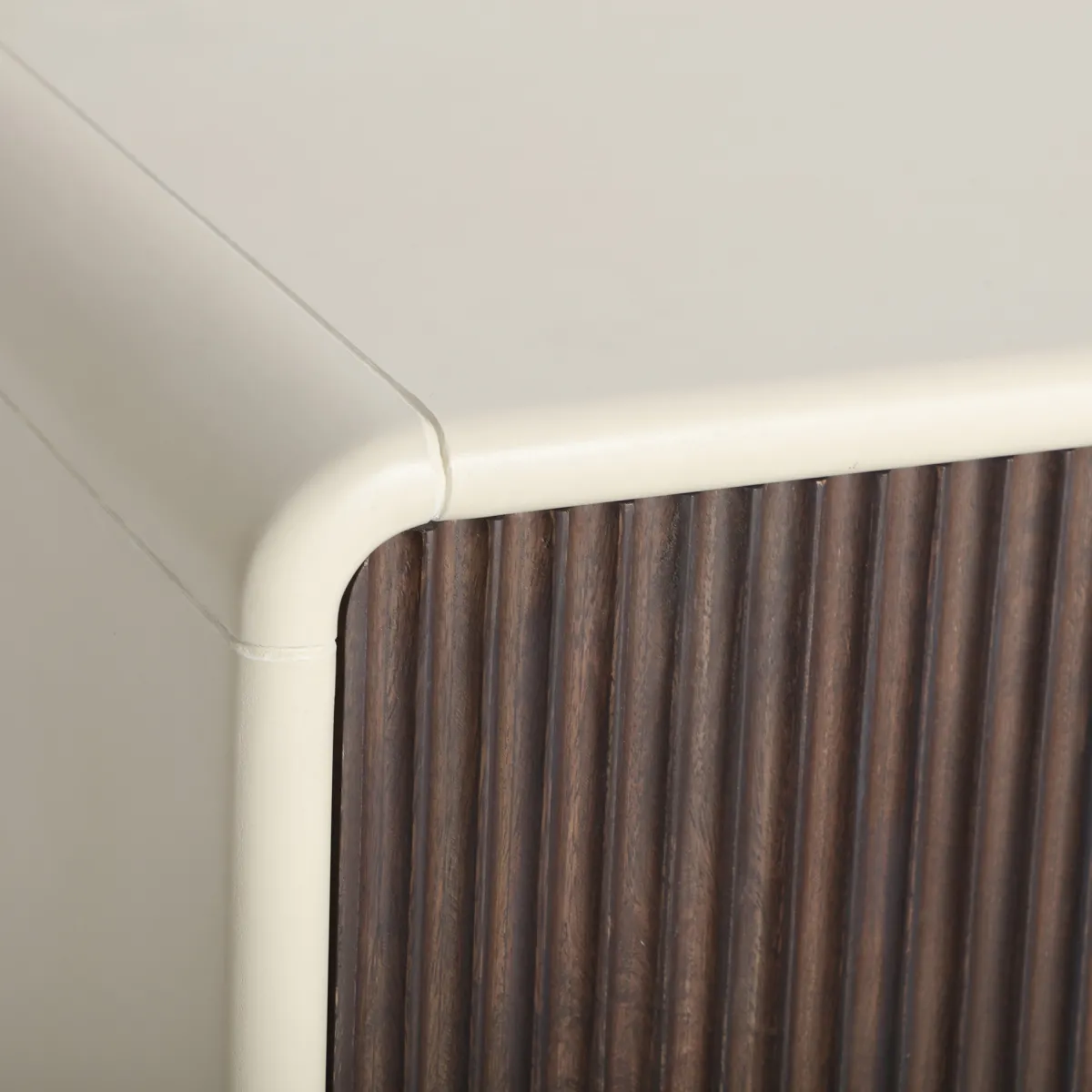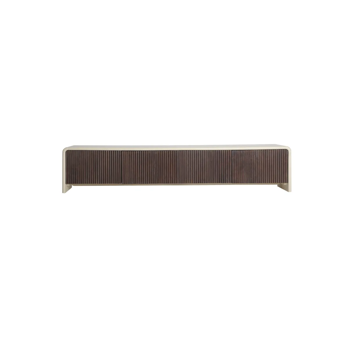 Mueble tv Milhar de estilo contemporáneo, fabricado en madera de mango en color marrón, combinado con madera dm en color beige.
