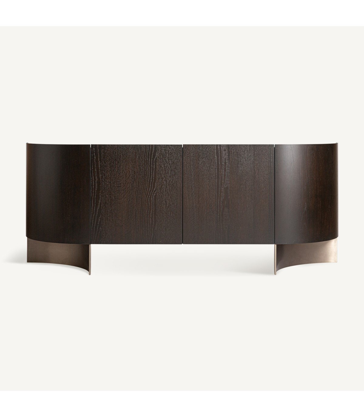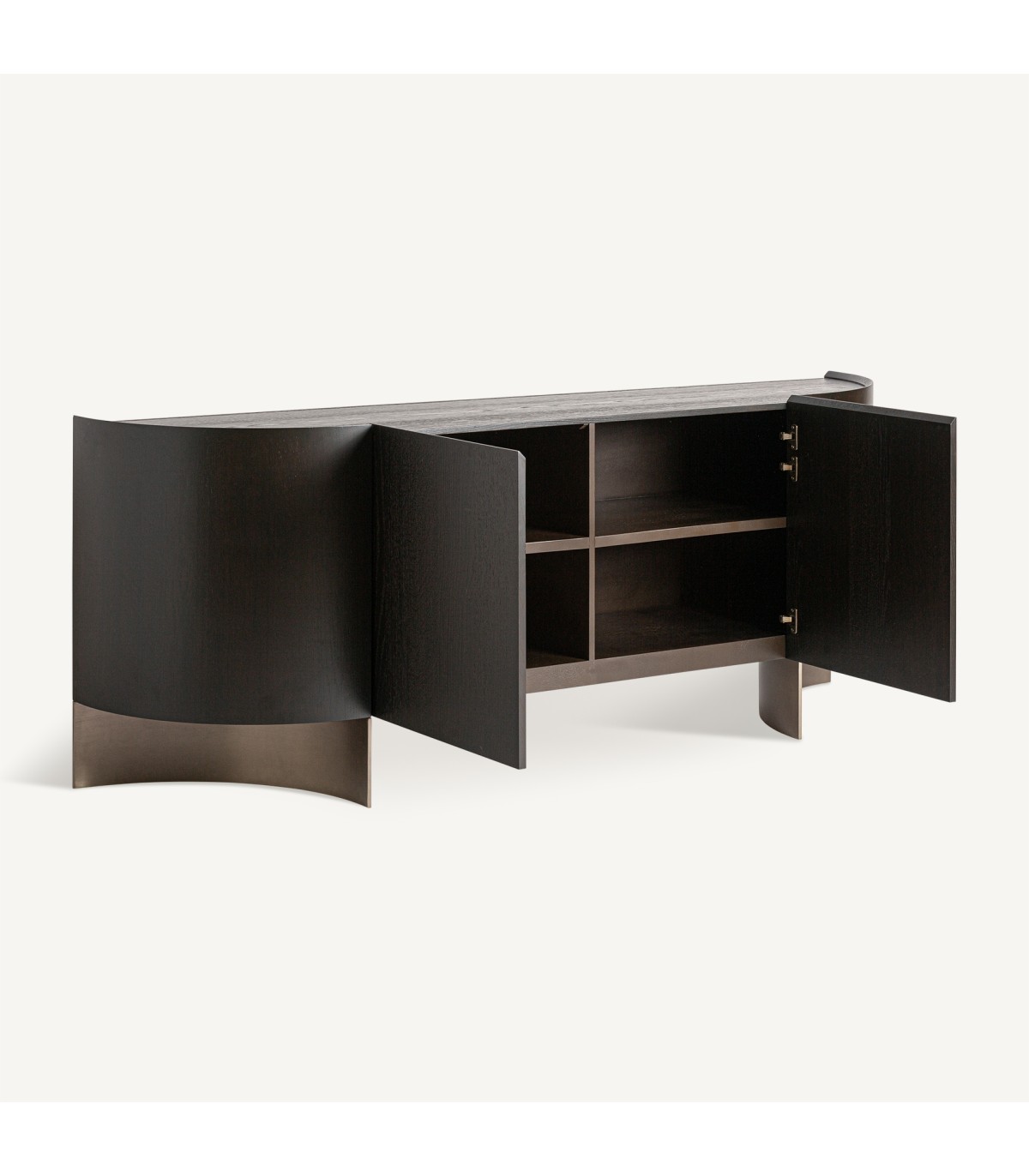 Aparador Neuvic de estilo art deco fabricado en chapa de roble en color marrón combinado con madera contrachapada y acero inoxidable en color oro con acabado mate. Producto desmontable.