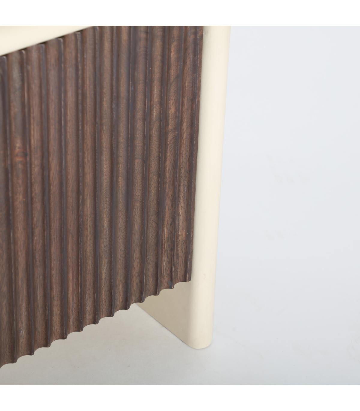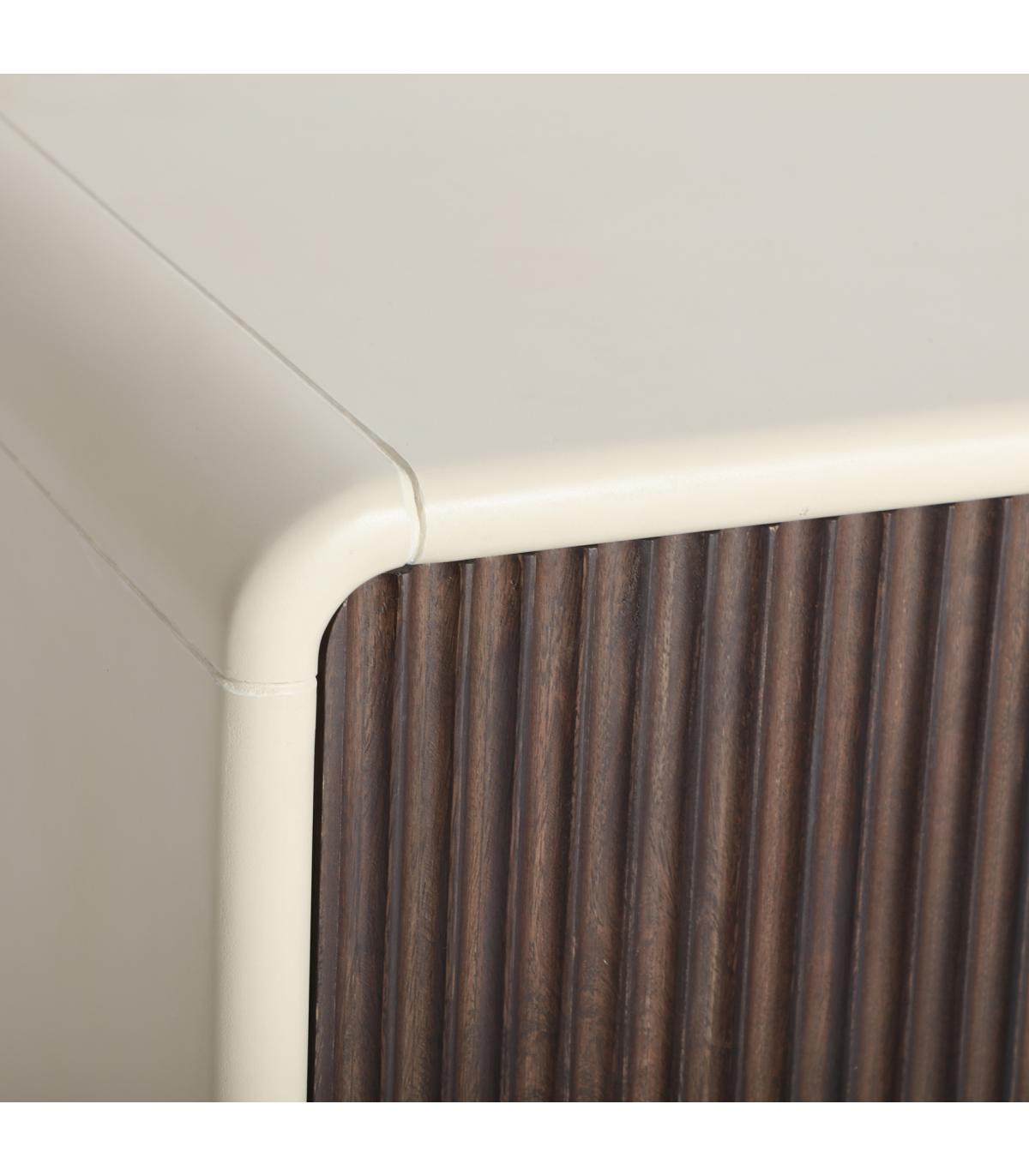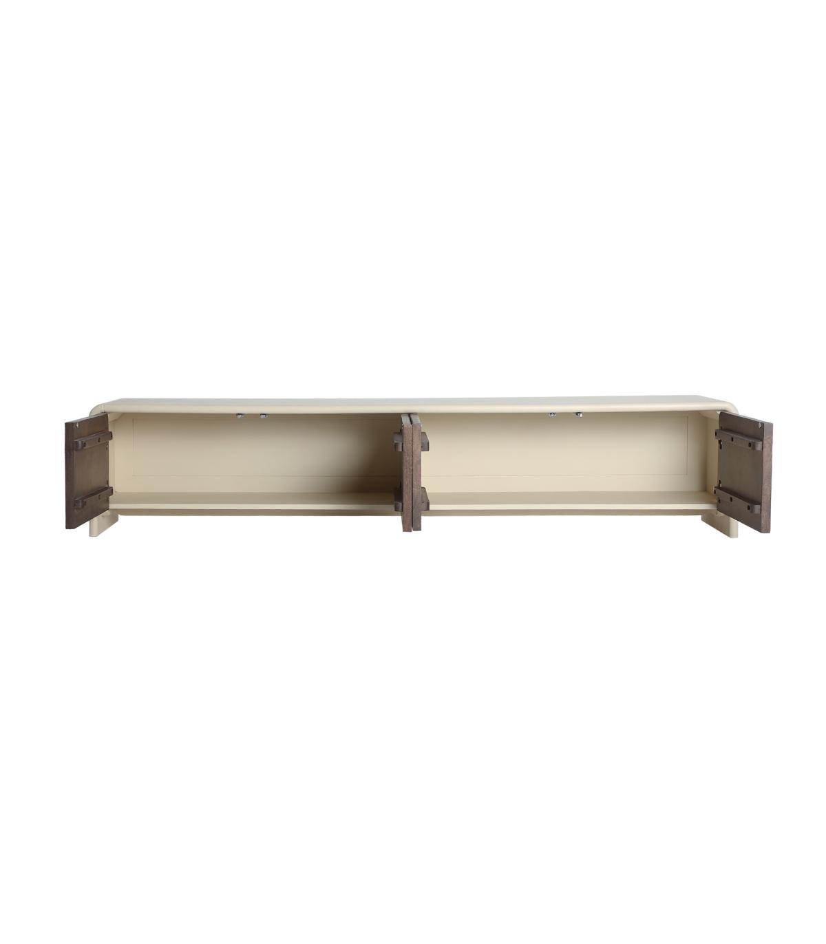 Mueble tv Milhar de estilo contemporáneo, fabricado en madera de mango en color marrón, combinado con madera dm en color beige.