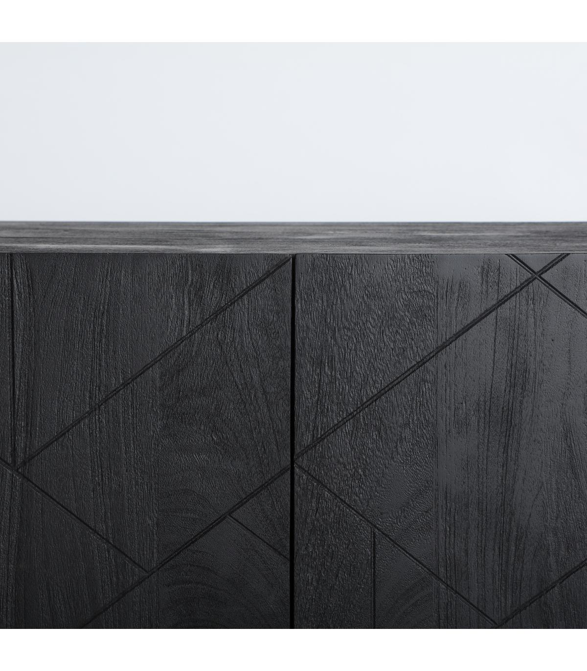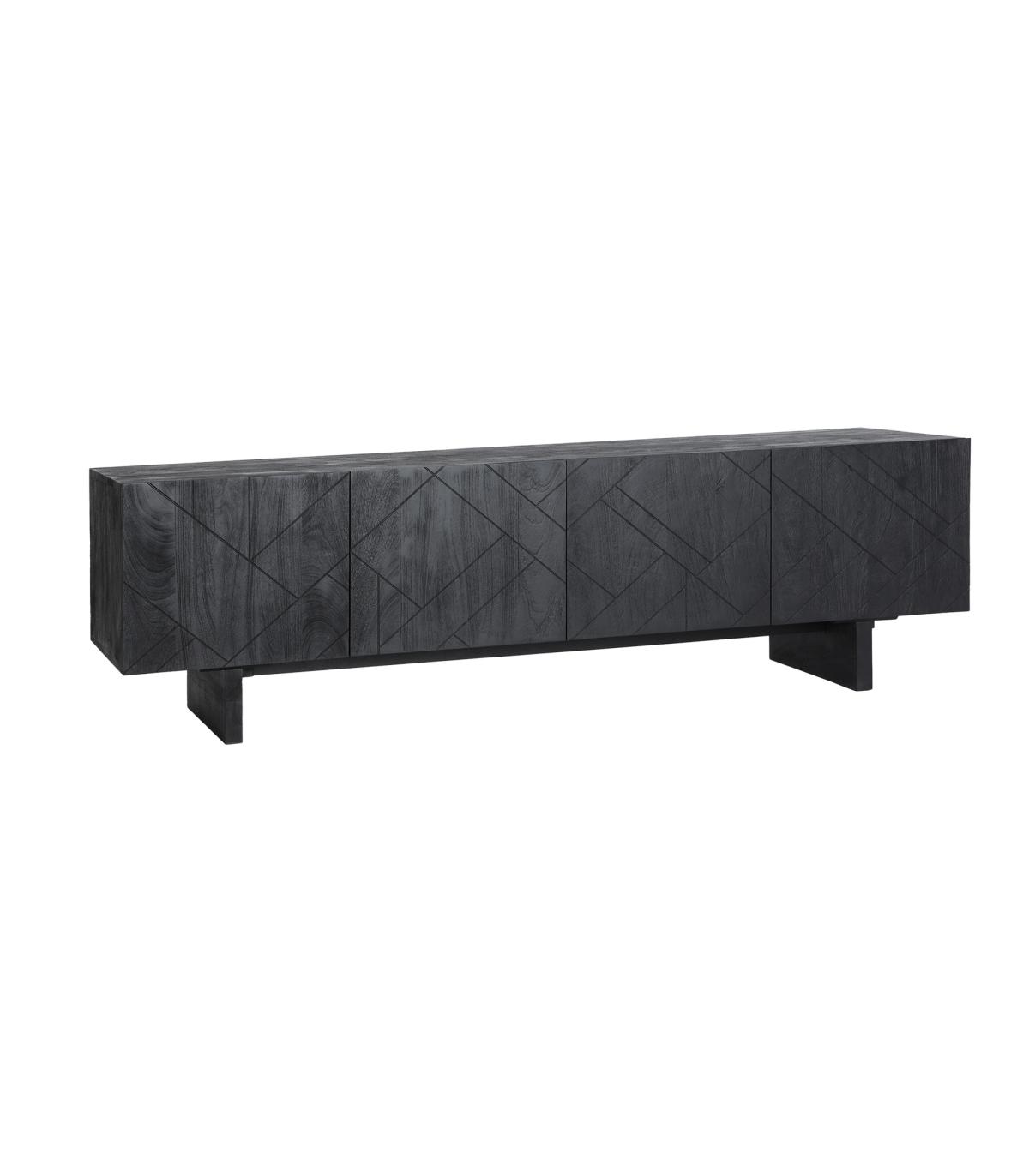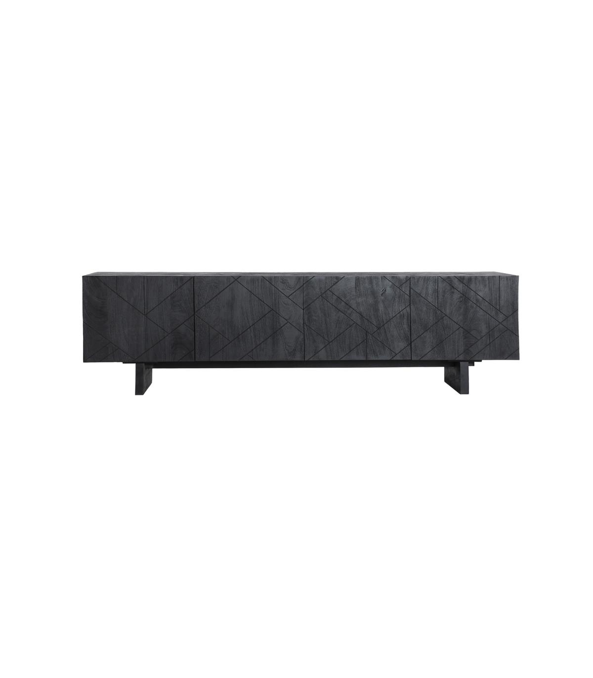 Mueble tv Bouloc de estilo contemporáneo, fabricado en madera de mango en color negro, combinado con madera dm.