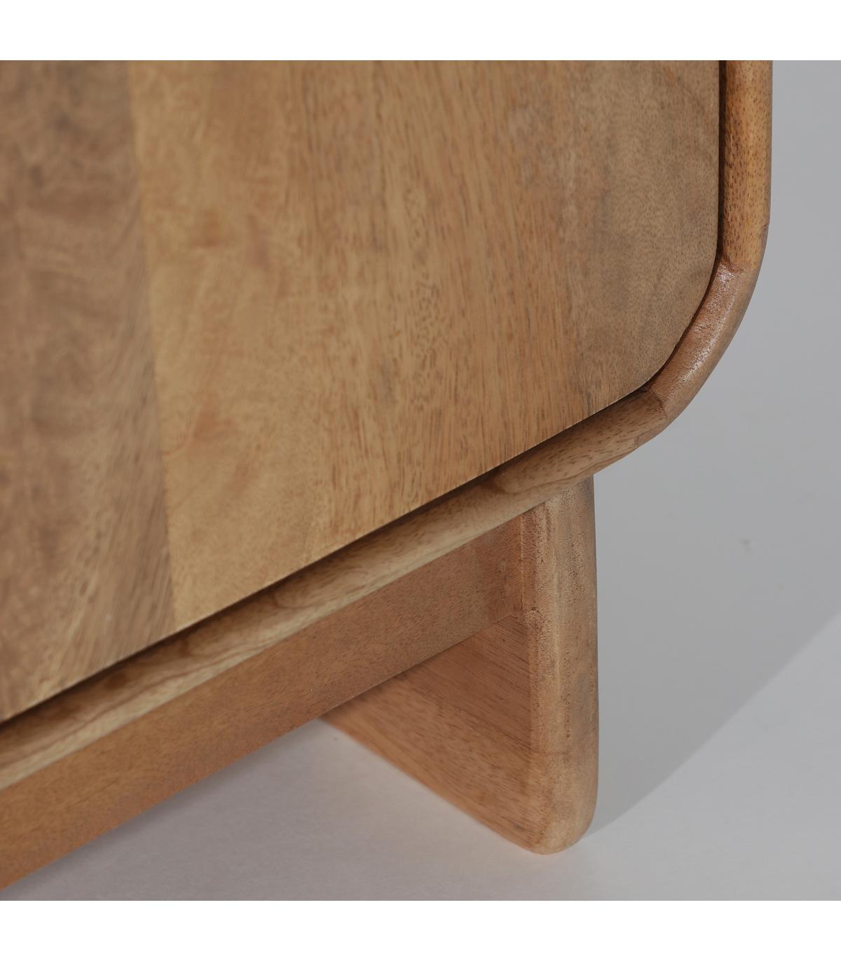 Mueble tv Canada de estilo nórdico, fabricado en madera de mango en color marrón claro en color champagne.