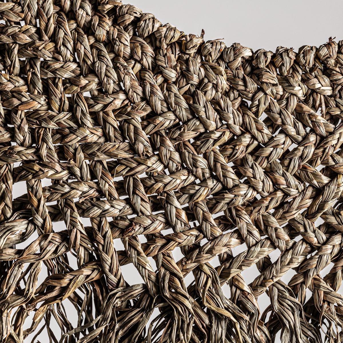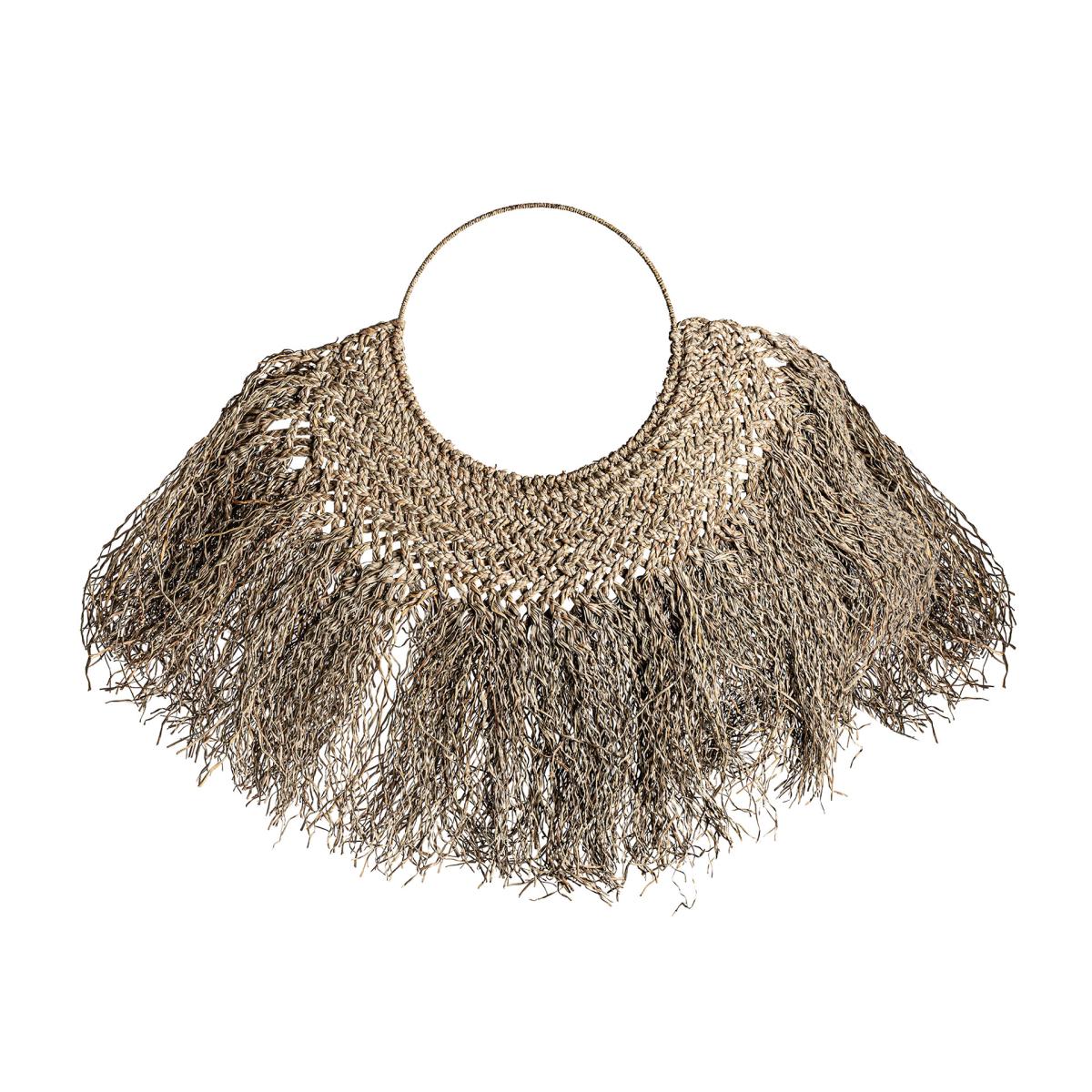 Panel decorativo de estilo étnico fabricado en fibra natural en color marrón combinado con concha.