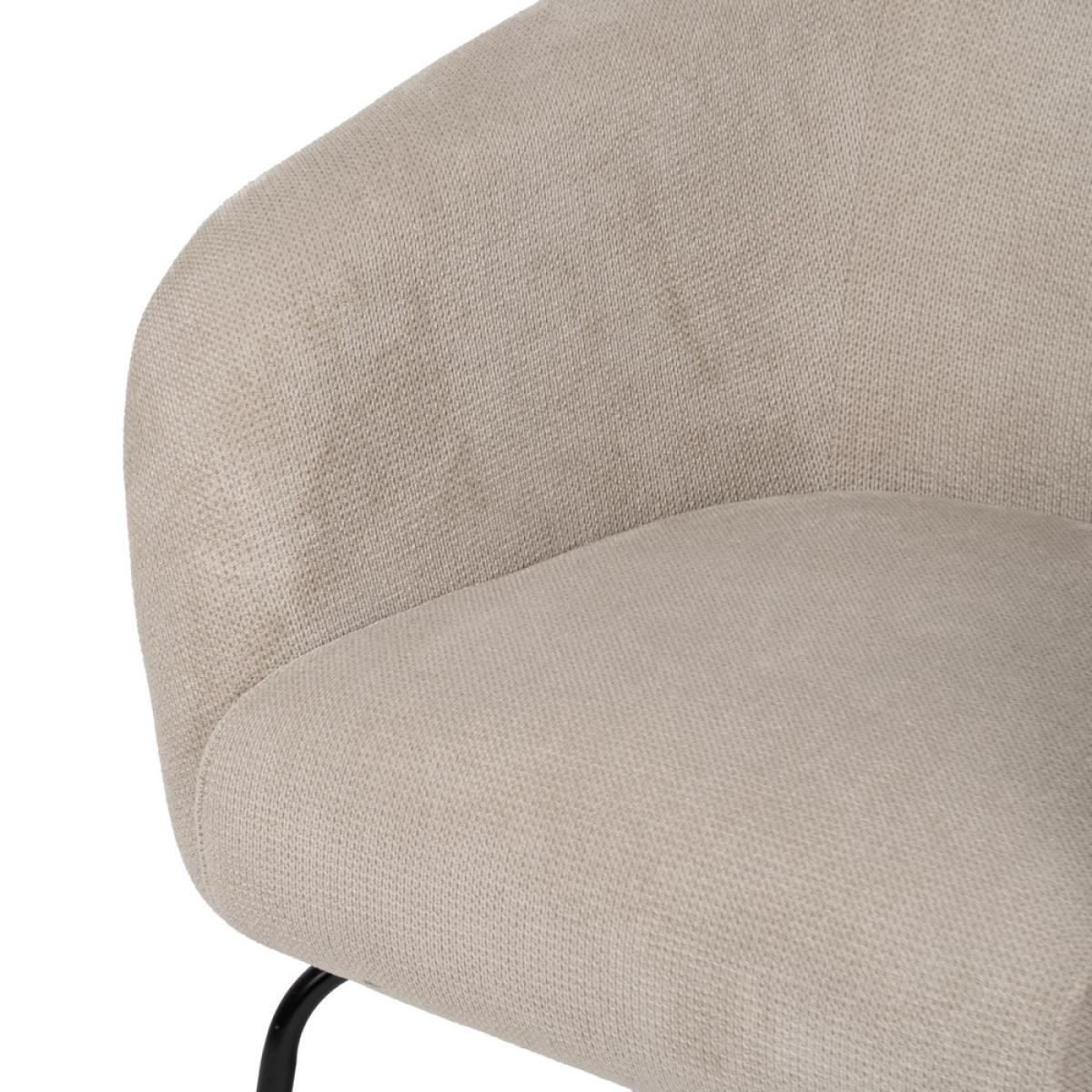 SILLÓN BEIGE TEJIDO-METAL 77 X 72 X 68 CM MATERIAL PATAS: METAL TEJIDO: POLIÉSTER Altura del asiento:43 cm. Altura de las patas:24cm Altura del respaldo: 34 cm Altura patas:24cm. Altura brazos desde el asiento:27cm. Distancia entre las patas:53 cm Medidas del asiento:49x52x43cm. Relleno: Espuma. Gramaje: 32g/m2 Densidad del respaldo:24kgs/m3 Densidad del asiento:28kgs/m3 Peso máximo soportado: 100kgs. Las patas requieren montaje. No apilable. Cumple con la normativa UNE-EN 12520:2016