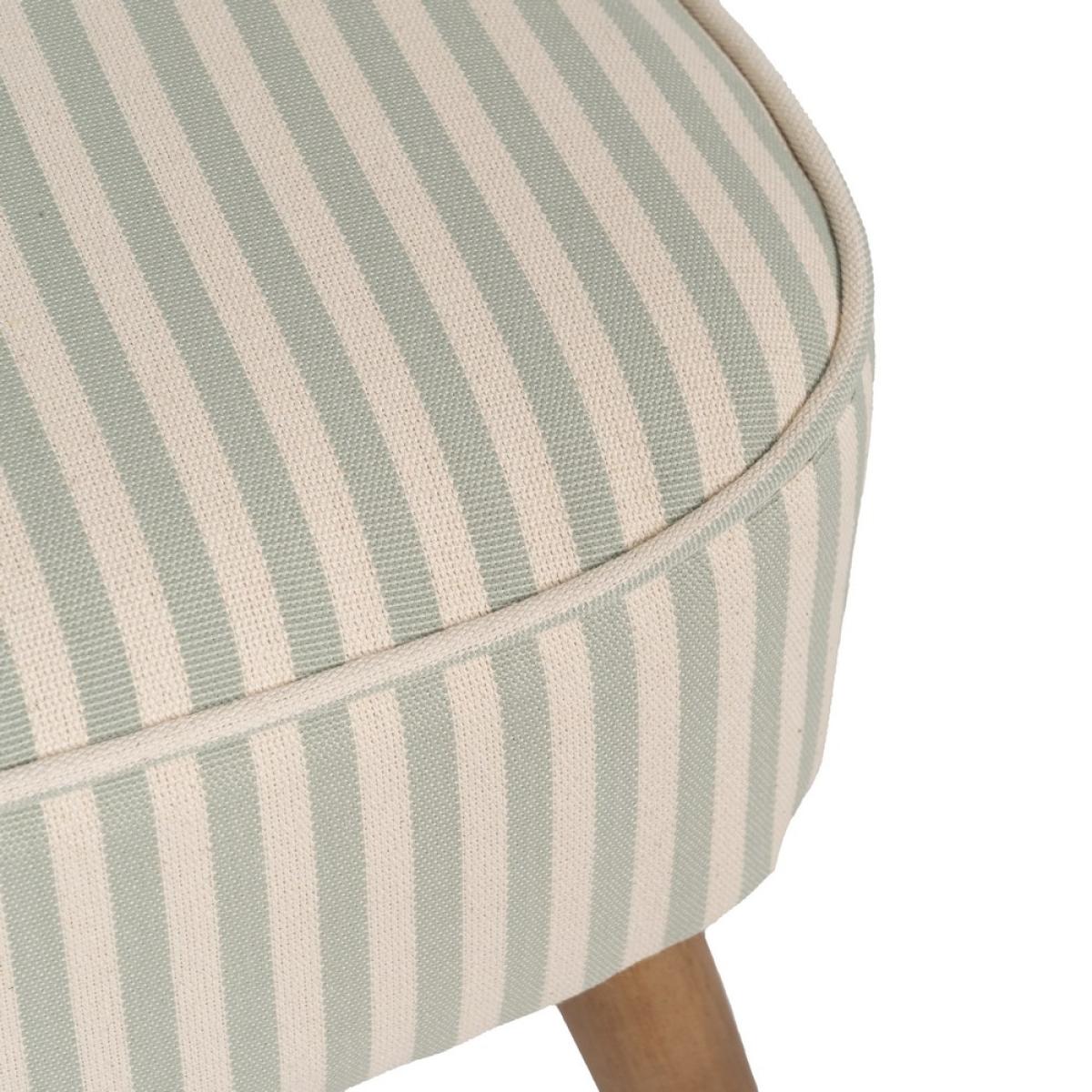 SILLÓN RAYAS VERDE MADERA DE CAUCHO 54 X 64 X 73 CM Material: madera de caucho. Altura asiento: 44cm. Altura respaldo: 31cm. Altura patas: 24cm. Distancia entre las patas:39,5cm. Relleno:Foam y algodón elástico. Densidad:20kg/m3. Peso máximo soportado:110kgs Las patas requieren montaje. No apilable. Cumple con la normativa UNE EN 12520:2016.