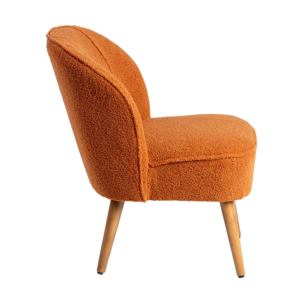 SILLÓN TERRACOTA MADERA DE CAUCHO SALÓN 54 X 64 X 73 CM Material: madera de caucho. Altura asiento: 44cm. Altura respaldo: 31cm. Altura patas: 24cm. Distancia entre las patas:39,5cm. Relleno:Foam y algodón elástico. Densidad:20kg/m3. Peso máximo soportado:110kgs Las patas requieren montaje. No apilable. Cumple con la normativa UNE EN 12520:2016.