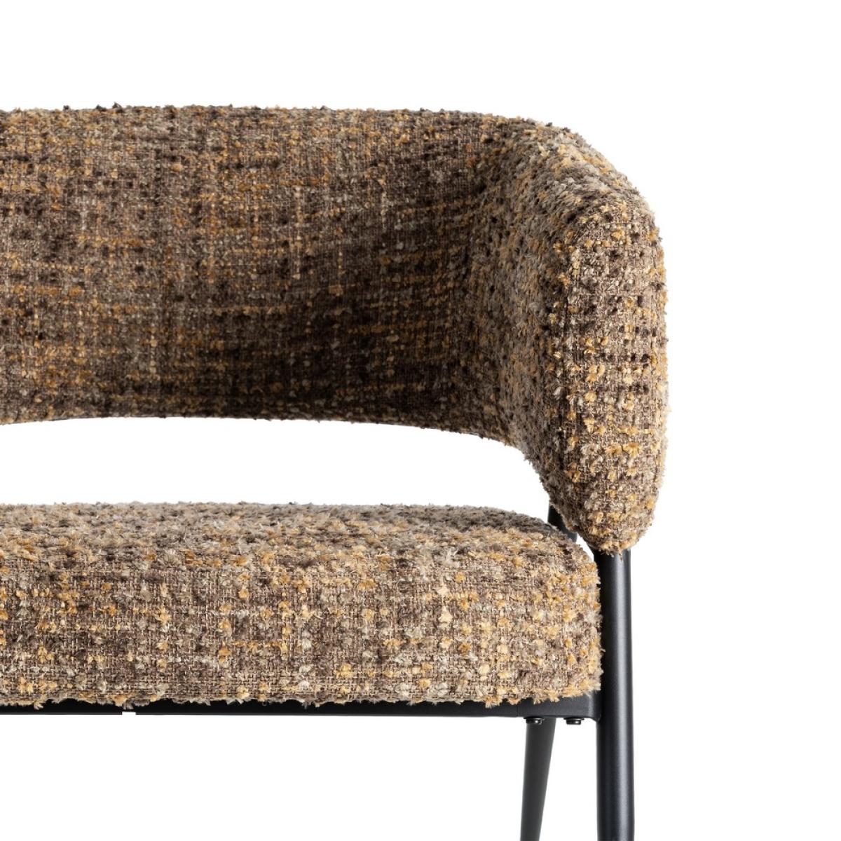 SILLÓN JASPEADO MARRÓN TEJIDO-METAL 71 X 70 X 75 CM Material: tejido, metal. Altura asiento: 40cm. Ancho asiento: 58cm. Profundidad asiento: 59cm. Altura respaldo: 39cm. Altura reposabrazos: 30cm. Altura patas: 30cm. Cumple la normativa EN16139 (catering).