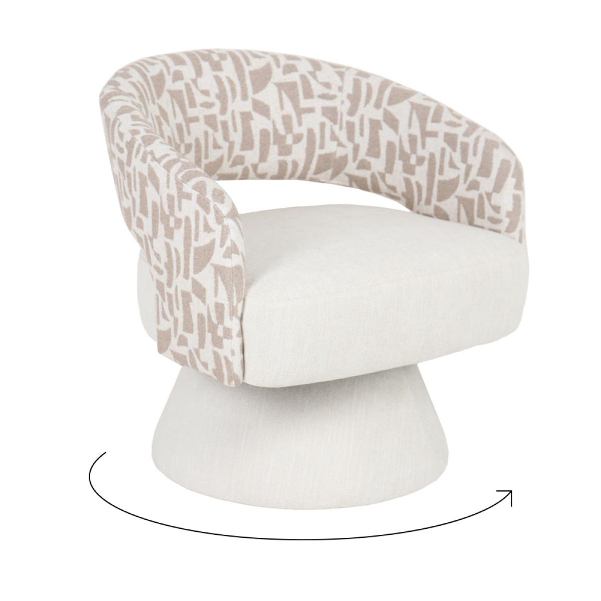 SILLÓN GIRATORIO CREMA-BEIGE 71 X 68 X 72 CM Material: tejido 100% poliéster - estructura madera conglomerada y hierro - pata pvc. Relleno: foam Altura asiento: 42cm. Altura reposabrazos: 60cm. Para montar. Cumple normativa EN12520:2016