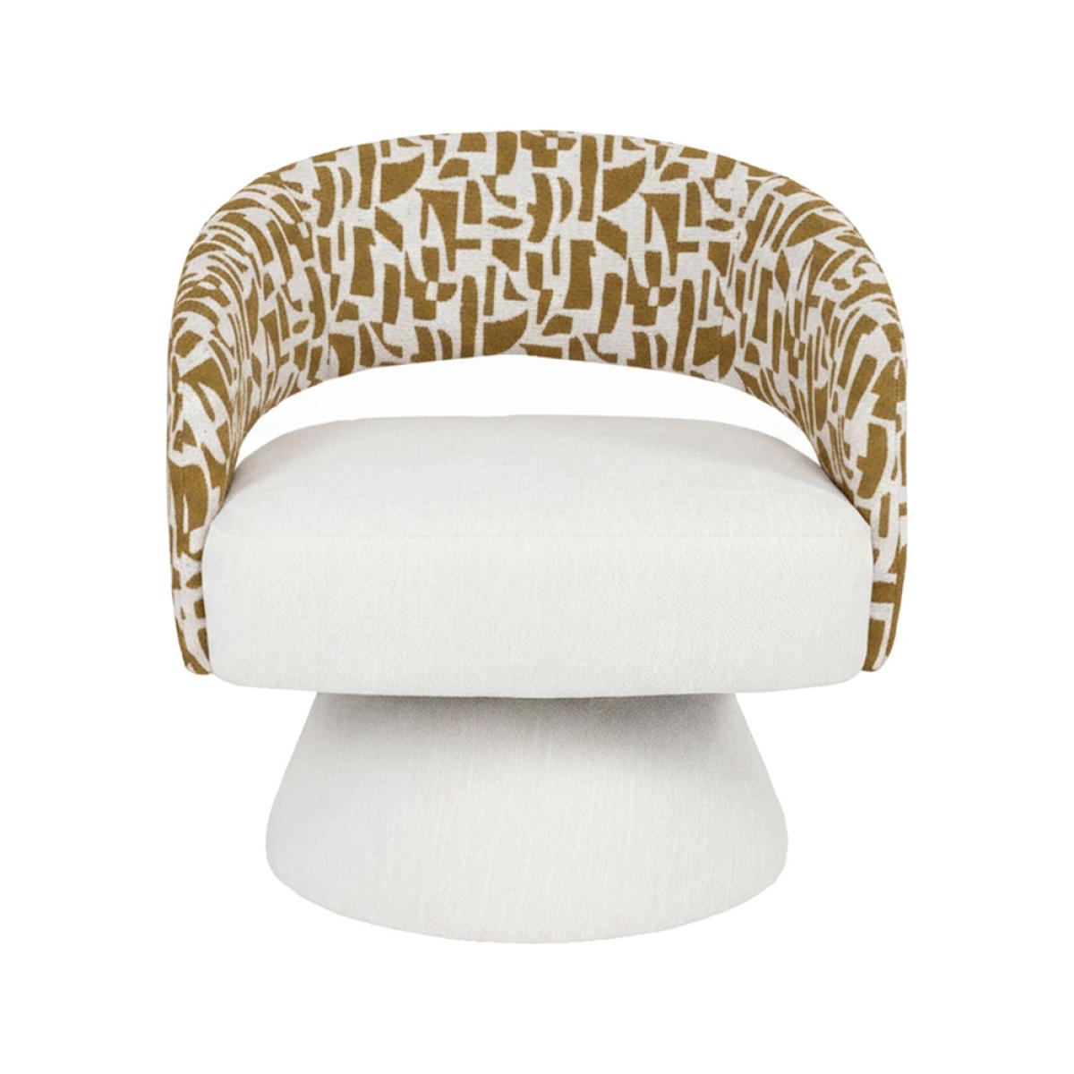 SILLÓN GIRATORIO CREMA-OCRE 71 X 68 X 72 CM Material: tejido 100% poliéster - estructura madera conglomerada y hierro - pata pvc. Relleno: foam Altura asiento: 42cm. Altura reposabrazos: 60cm. Para montar. Cumple normativa EN12520:2016