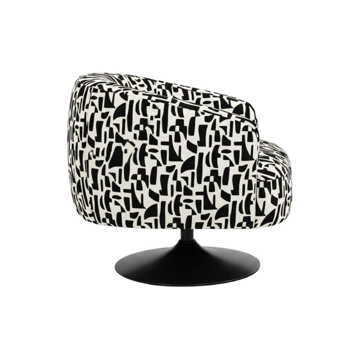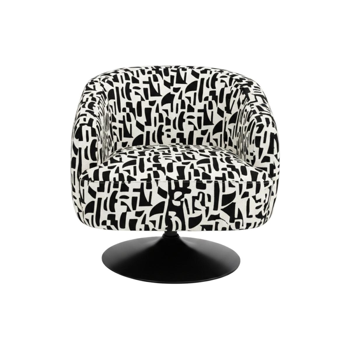 SILLÓN GIRATORIO NEGRO-BLANCO 76 X 80 X 73 CM Material: tejido 100% poliéster - estructura madera conglomerada. Pata hierro Relleno: foam Altura asiento: cm. Precisa montaje. Cumple normativa EN12520:2025