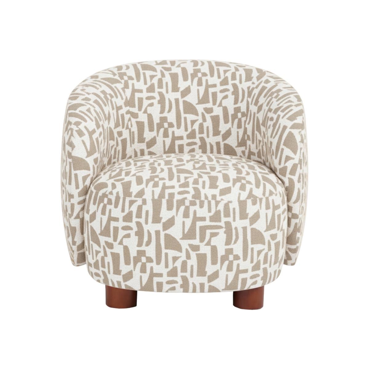 SILLÓN ESTAMPADO CREMA-BEIGE 80 X 82 X 62 CM Material: tejido 100% poliéster - estructura madera conglomerada. Patas madera de caucho. Patas para montar. Relleno: foam Altura asiento: cm. Cumple normativa EN12520:2025