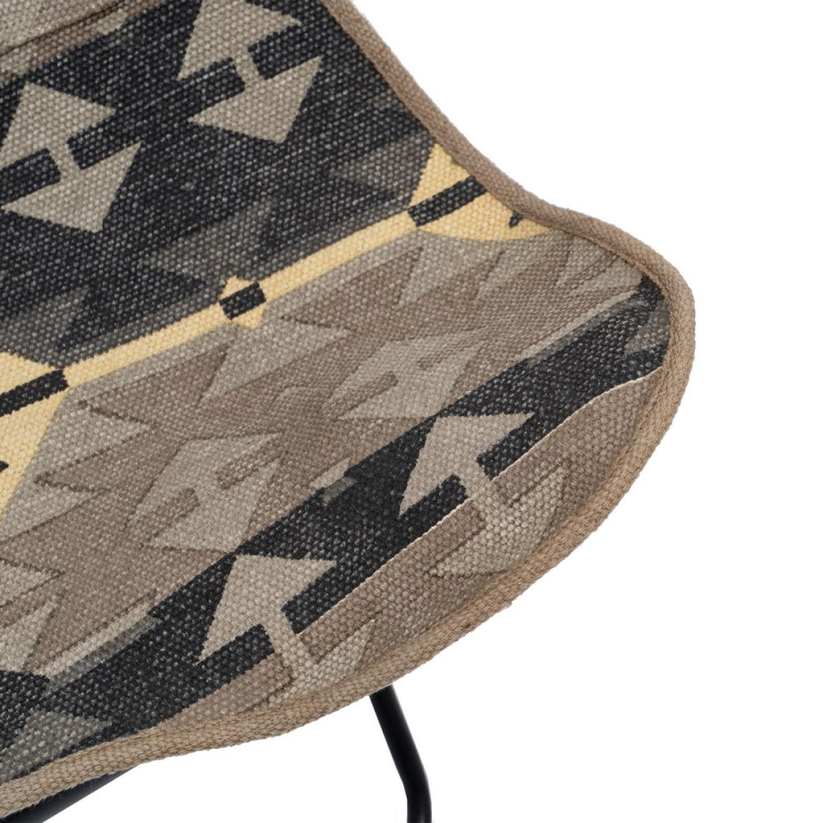 SILLA NEGRO-TAUPE TEJIDO-METAL SALÓN 75 X 75 X 95 CM Material: hierro, tejido (100% algodón pintado a mano). Ancho asiento: 67cm. Profundo: 38cm. Altura respaldo: 44cm. Altura asiento: 42cm.