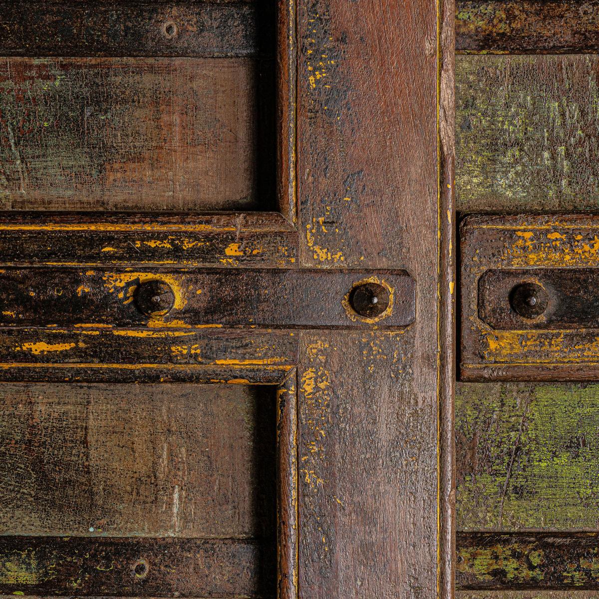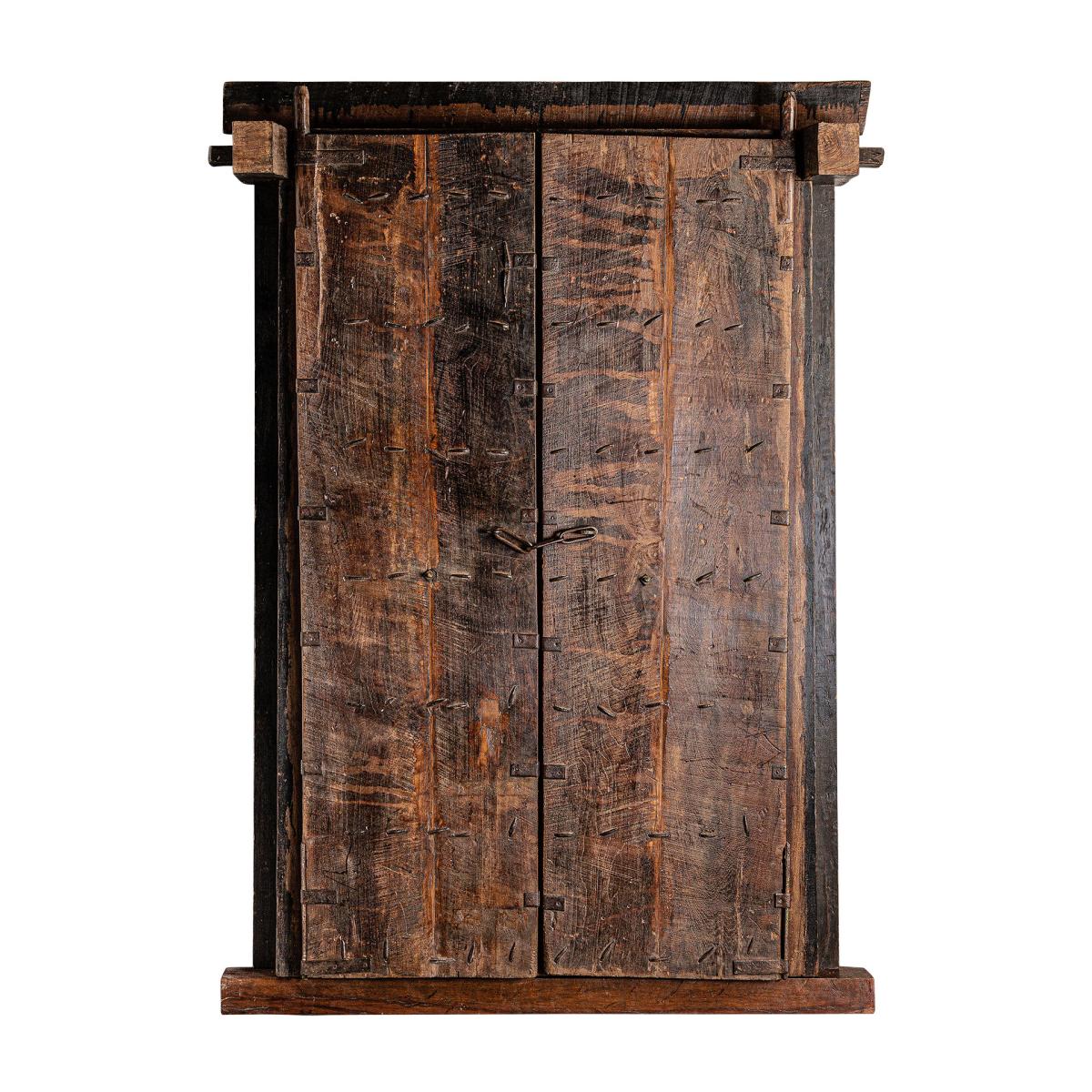 Puerta samia de estilo étnico fabricado en madera de teka en color marrón con acabado envejecido. Producto desmontable.