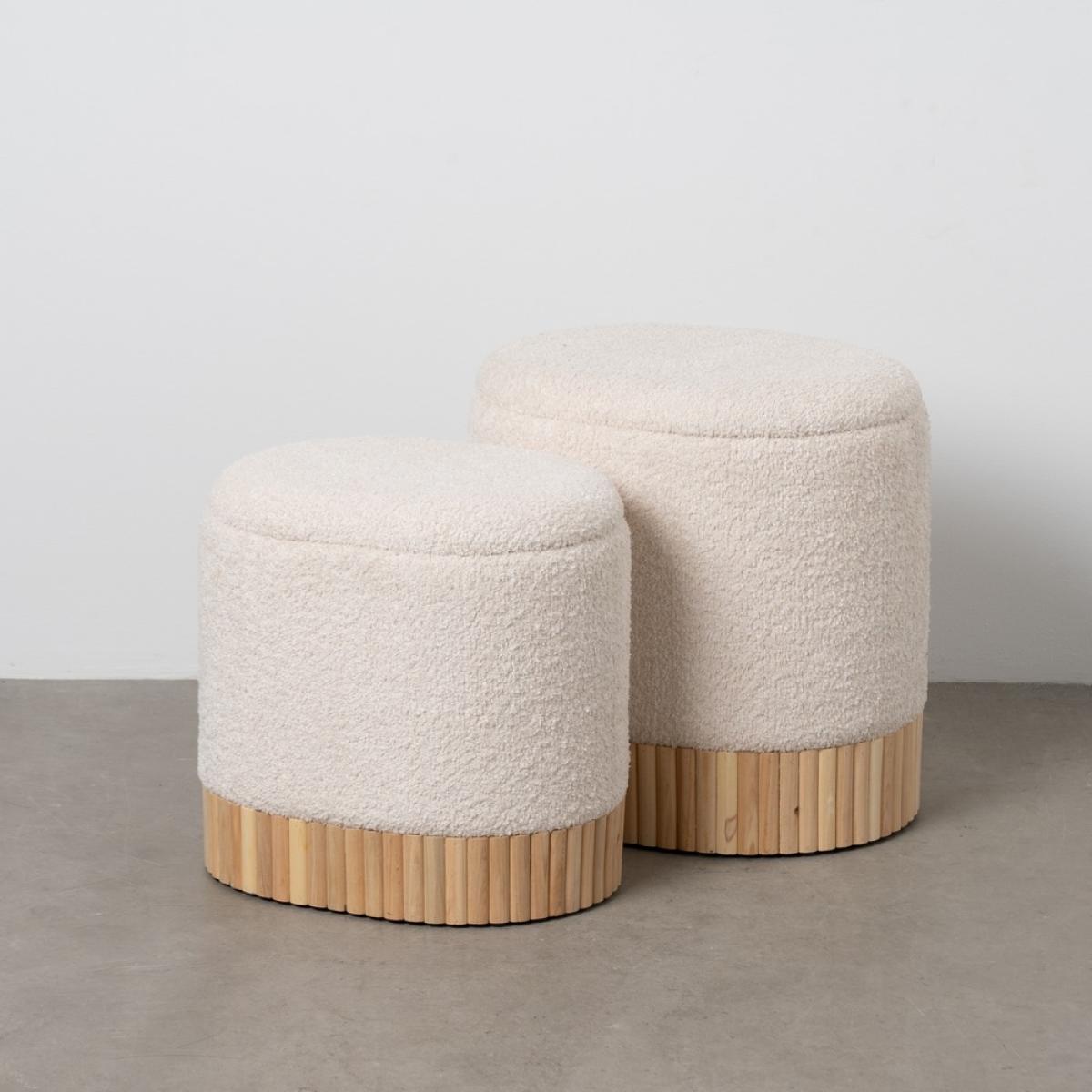 ASIENTOS Y SIMILARES - BANCOS Y PUFS 614807 - S/2 PUF BAÚL CREMA DM-TEJIDO 44 X 34 X 45 CM