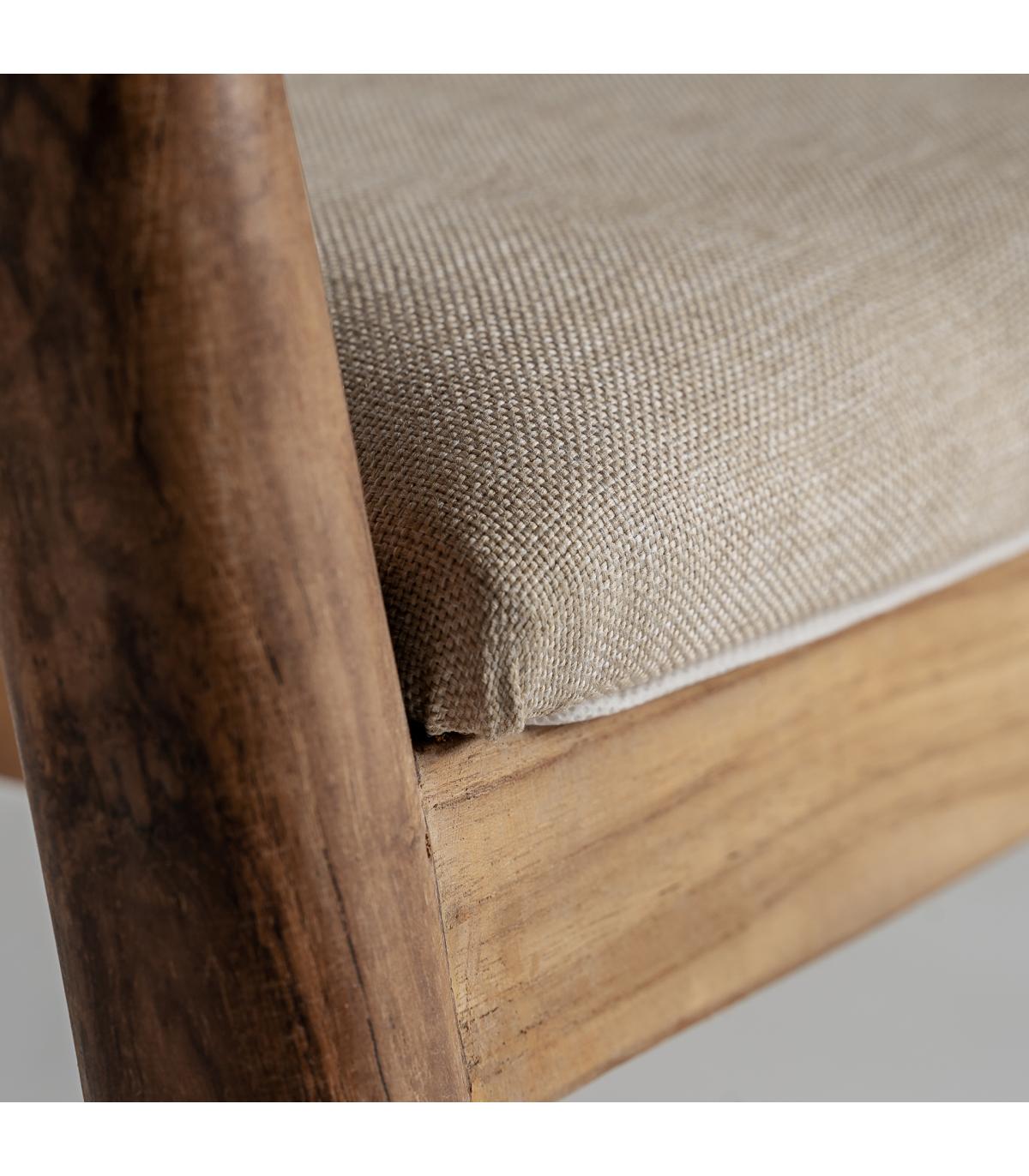 Silla malbun de estilo colonial fabricado en madera de teka en color marrón combinado con poliéster.