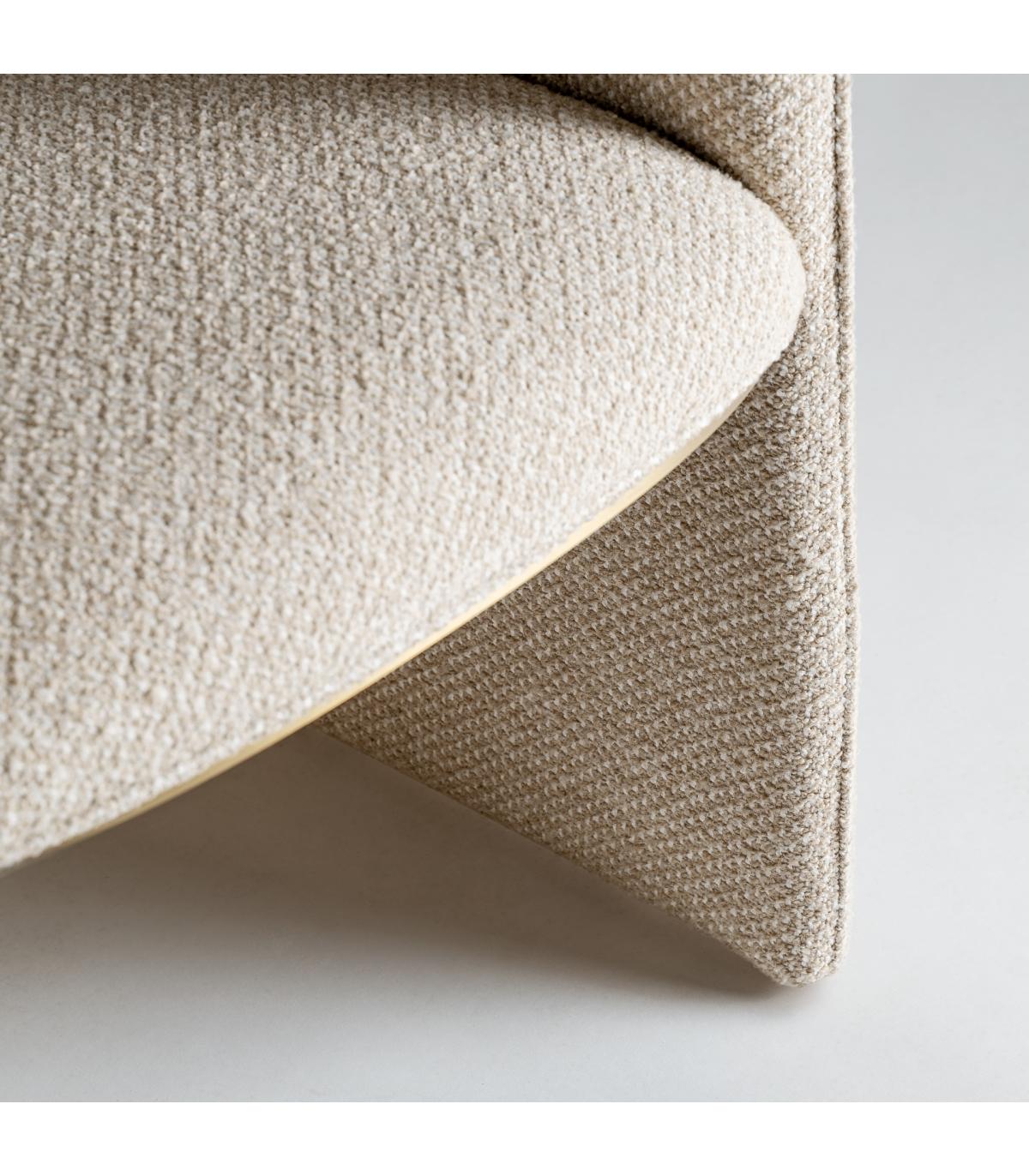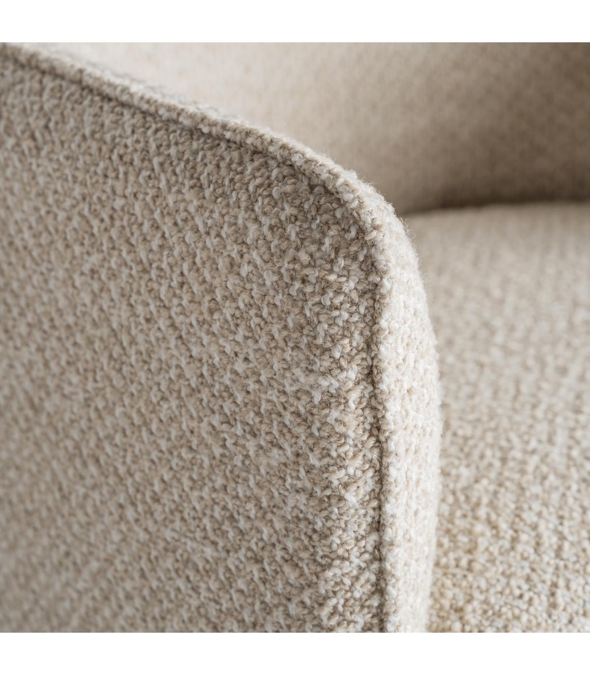 Sillón mayun de estilo art deco fabricado en poliéster en color beige combinado con hierro.