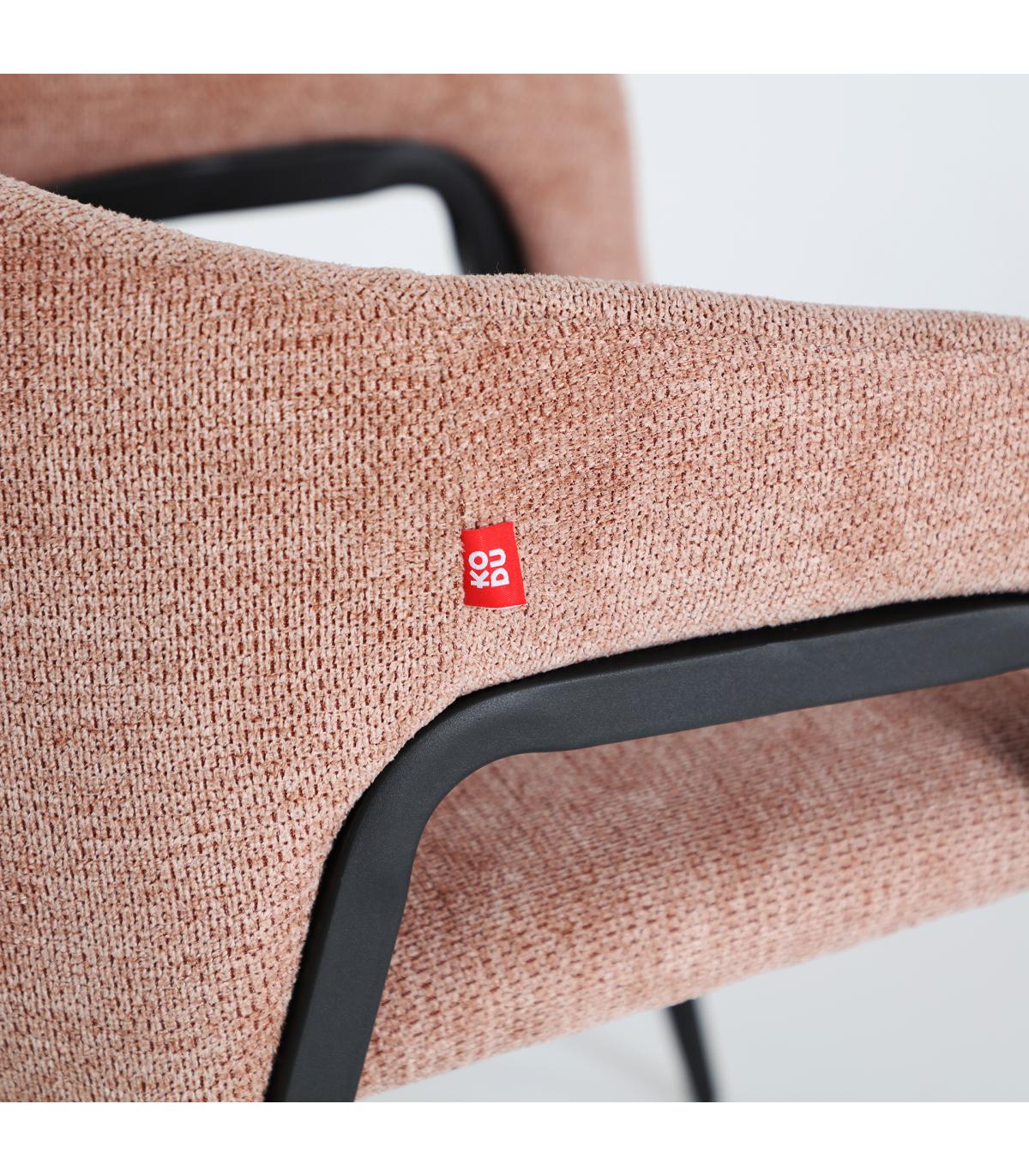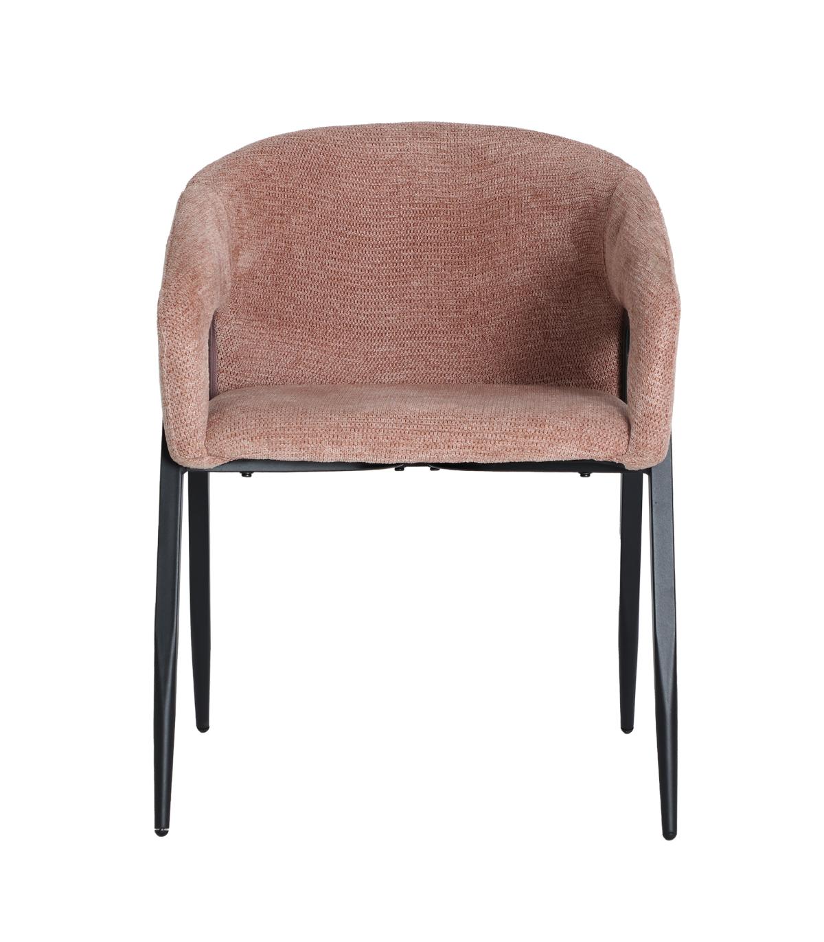 Silla Aren de estilo contemporáneo, fabricado en poliéster en color rosa palo, combinado con hierro en color negro y espuma. Producto desmontable.