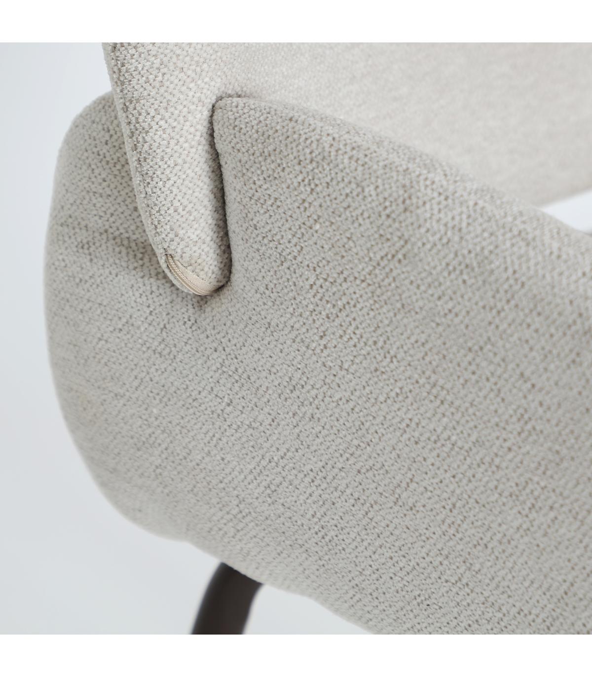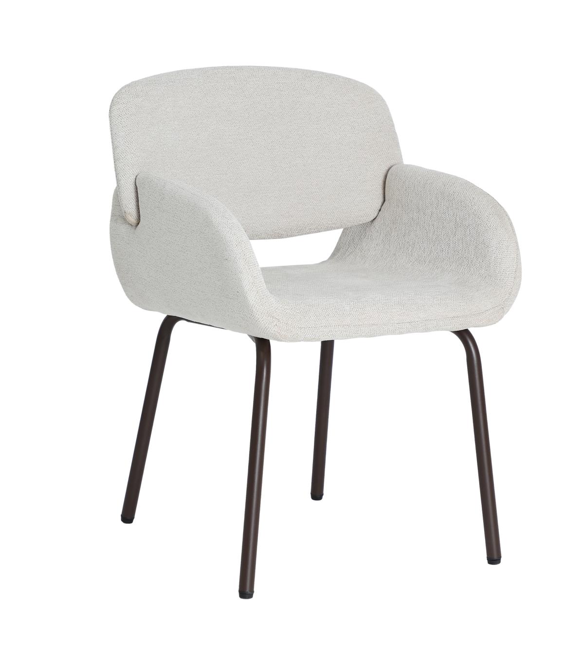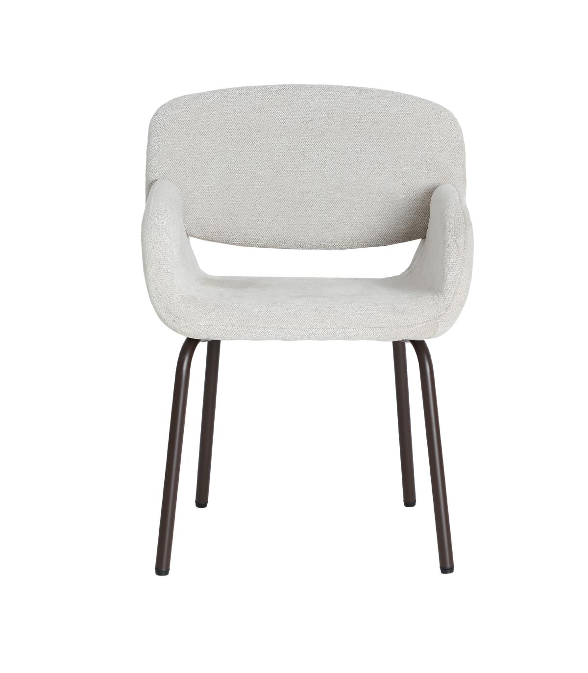 Silla Noor de estilo contemporáneo, fabricado en poliéster en color blanco roto, combinado con hierro en color marrón y espuma. Producto desmontable.