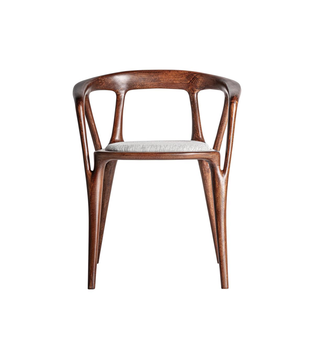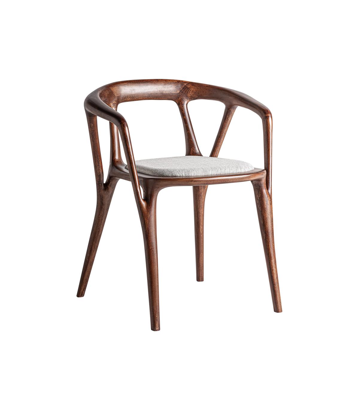 Silla Eauze de estilo contemporáneo fabricado en madera de haya en color marrón combinado con poliéster en color gris con acabado jaspeado.