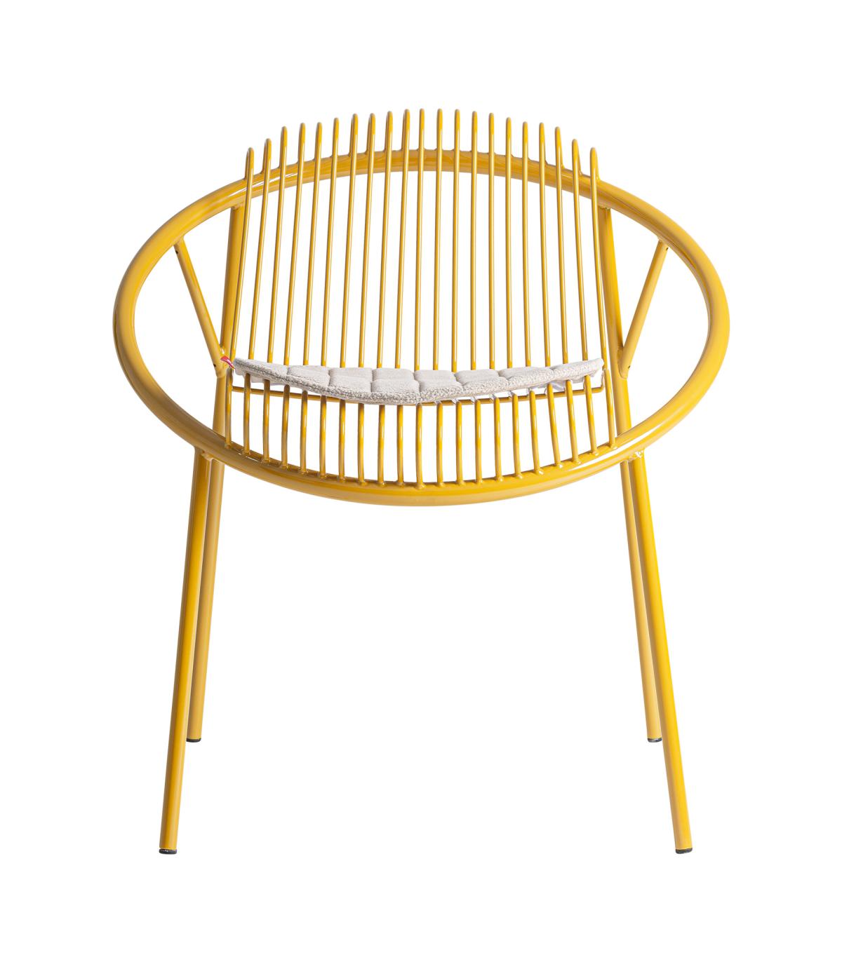 Silla Brienz de estilo moderno, fabricado en hierro en color mostaza, combinado con poliéster en color gris. Producto desmontable.